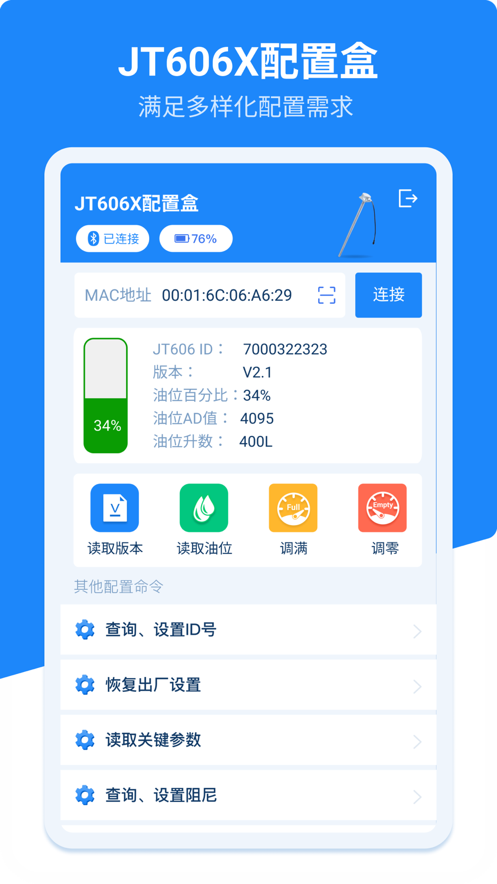 The JT606 Calibration Tool is an APP that performs command operation and maintenance for JT606 devices developed by the company itself.