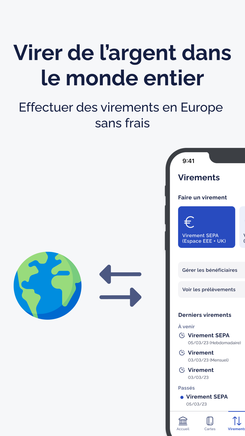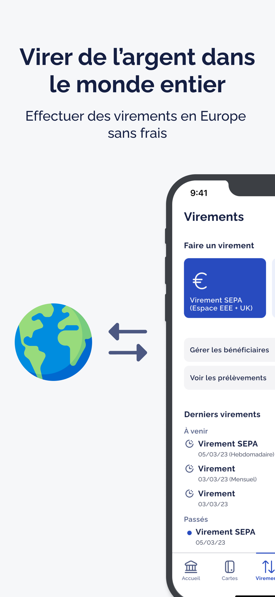 - La possibilité de faire des virements SEPA entrants ou sortant en 1 jour ouvré ou en instantané