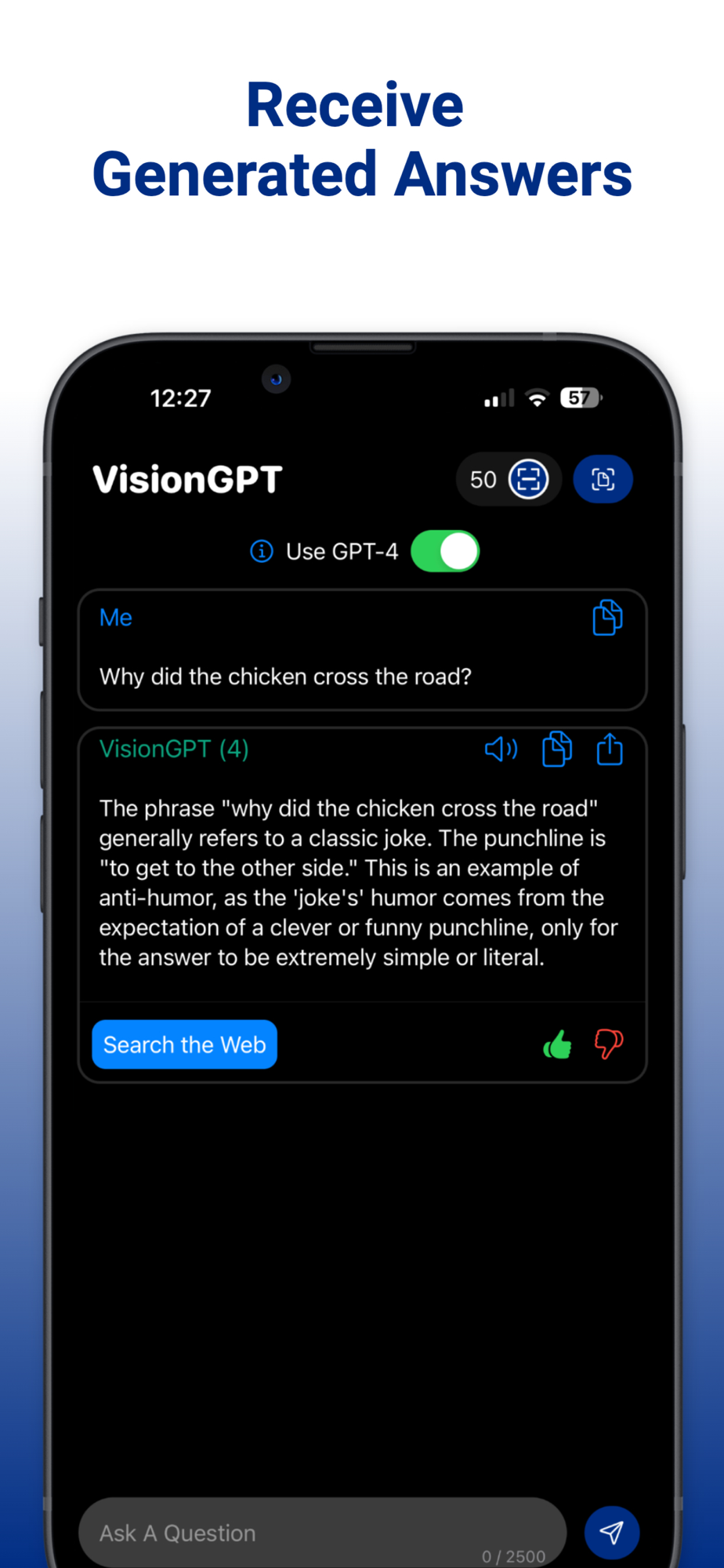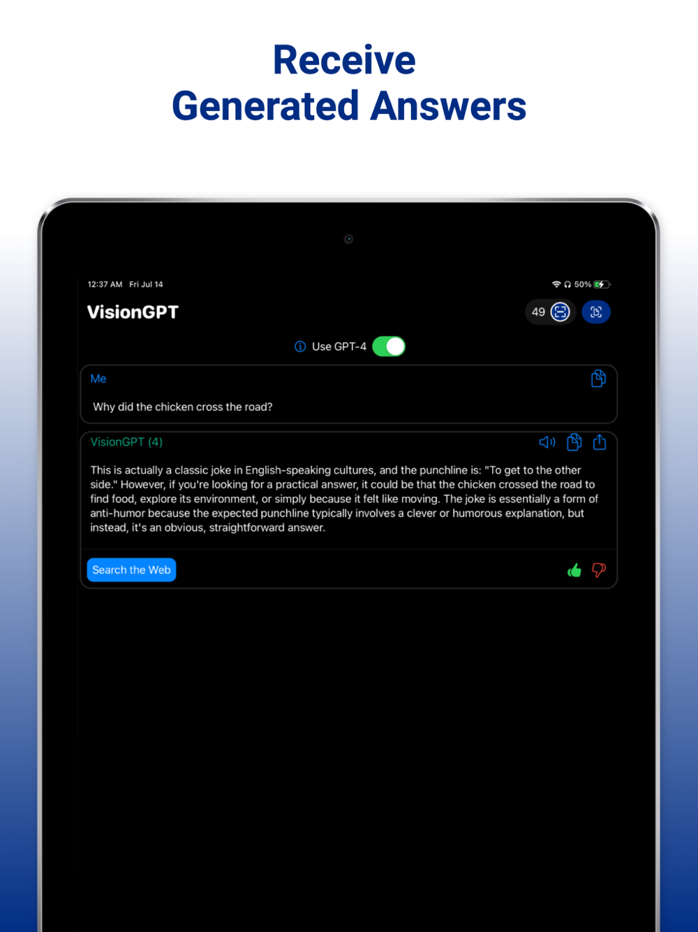 Explore the power of AI like never before with VisionGPT, a revolutionary mobile app that leverages the cutting-edge technology of GPT 3.5/4 and the expansive knowledge of the internet to provide instant answers to any question in the universe!