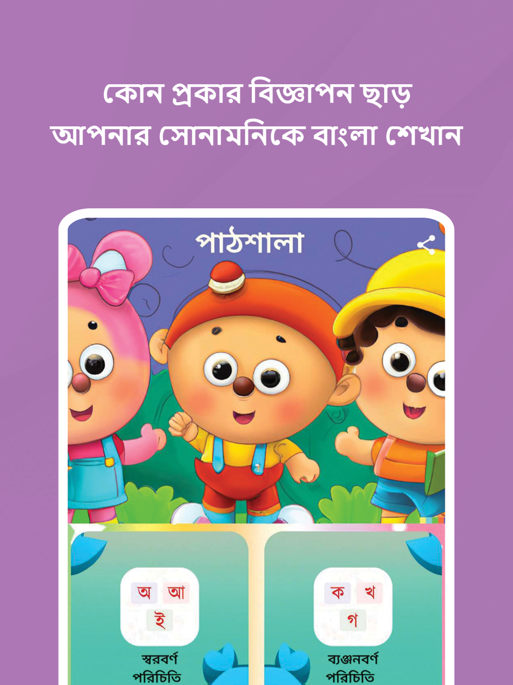 Teach Bengali to your kid without any ads, totally free.