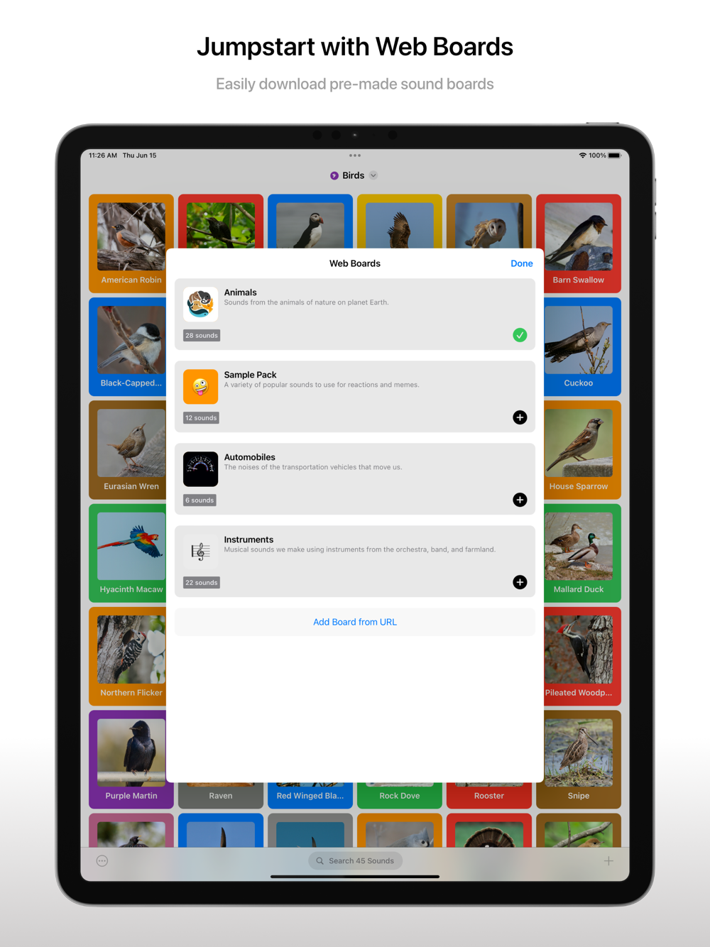 - Download sound boards from the web