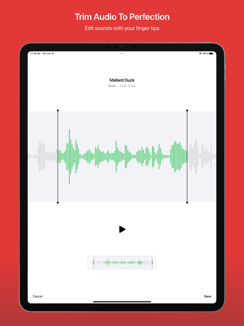 - Trim audio, repeat, and edit pitch and playback speed