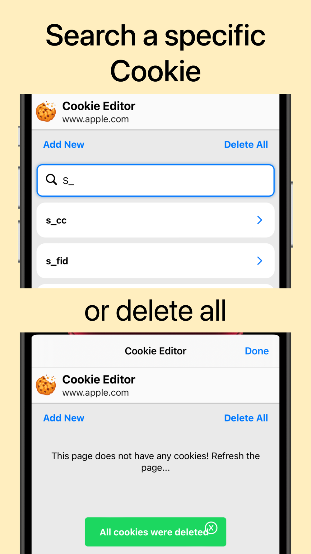 With our app, you can confidently examine and edit your cookies as you please. Cookie Editor equips you with the essential tools to edit the cookies on the current tab of your iOS, iPadOS, and MacOS devices, giving you complete control over your browsing experience.