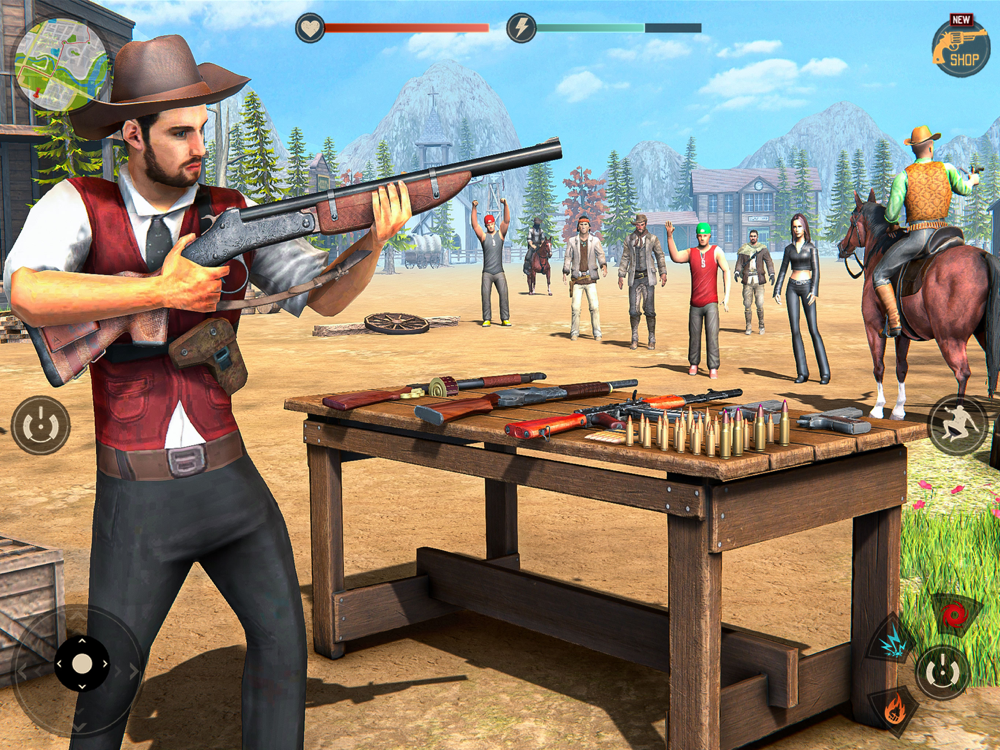 Use Old West style gangster gaming techniques and Wild West fighting tricks in Open World Gangster Crime western areas of hunting cowboy game or cowboy survival westland game. you are a Wild West Redemption real horse rider who participates in open-world horse simulator fighting and gangster cowboy gun shooting fighting adventure in horse sniper westren simulation games: west cowboy gun fighter shooting games Tackle Bloody West Howdy farmers of wild west cowboy gangster game and fight the west gunslinger of cowboy simulator sheriff games and cowboy animal catching games.