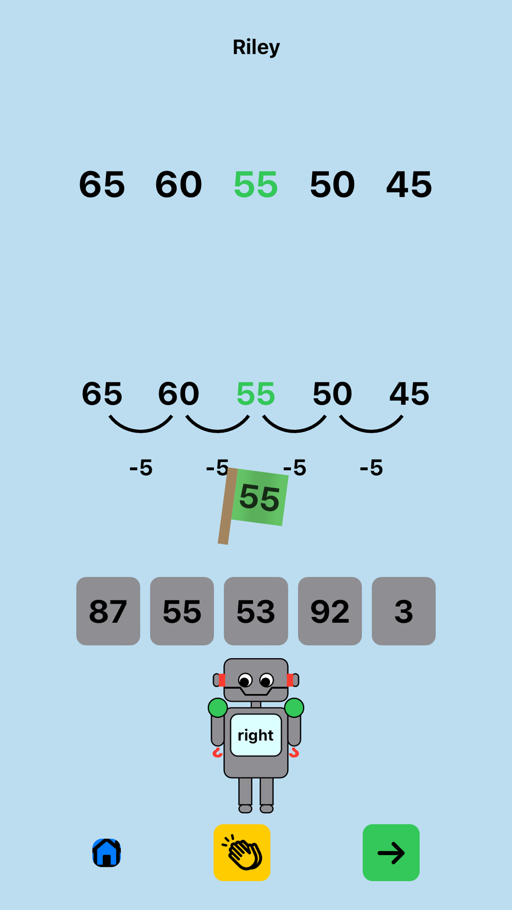 level 1 - 3. The name, level and the number of correct answers are stored on your device for future sessions.