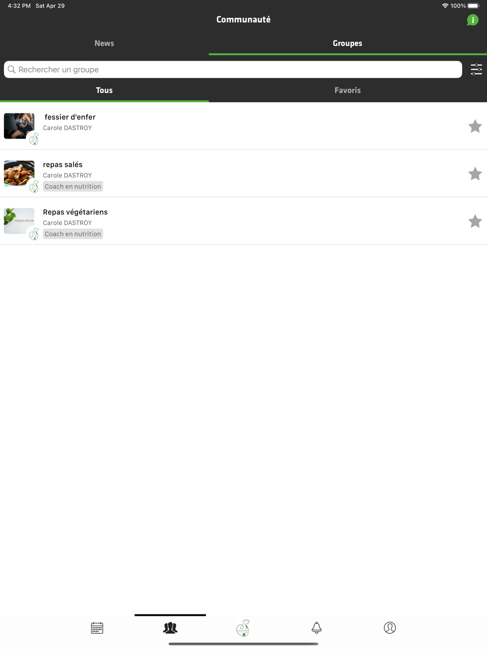 Notre application a la capacité de se synchroniser avec Santé pour afficher les données de santé du jour dans l'écran d'activité de l'utilisateur. Pour mieux suivre les entraînements, l'utilisateur peut partager les données avec le coach.