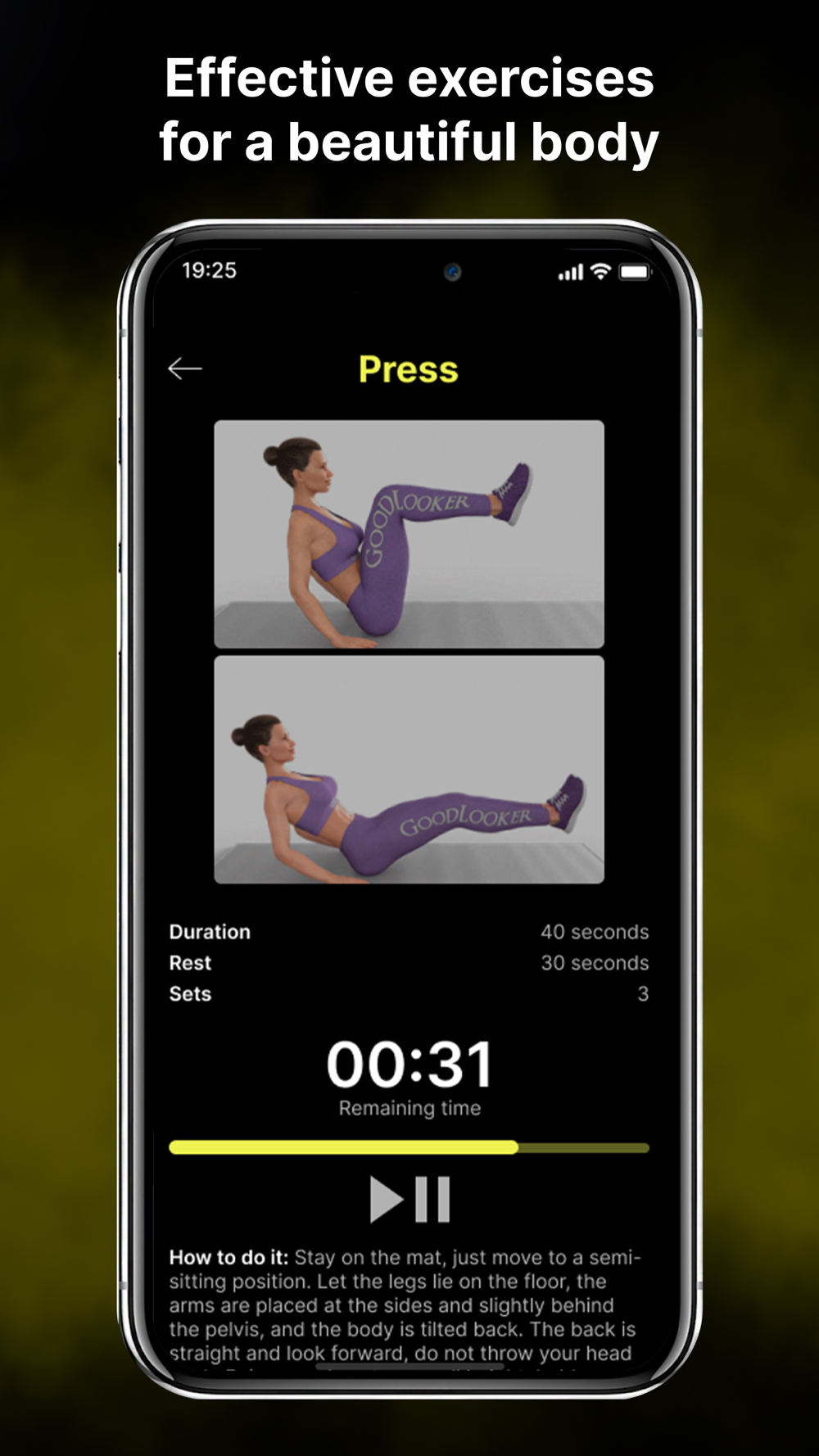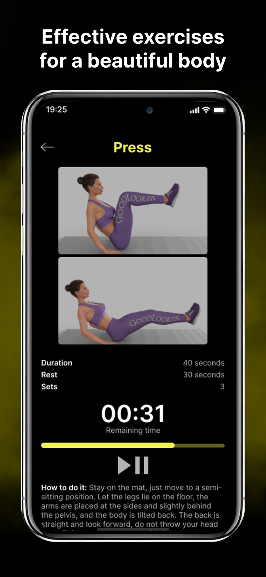 To maintain good health, your perfect figure and a great mood every day you just need to give a little time to different exercises every day and your body and health will always make you happy. You will have at your disposal a breakdown of all the exercises, you will be able to influence your figure and achieve the desired result. Do the exercises that are in the application and the desired result will not keep you waiting. Using the application you get a description of the exercises, you will see how to do them correctly, you will have a timer for performance and a lot of motivational information for you. Take care of your body, your health, and looking in the mirror you will always admire yourself.