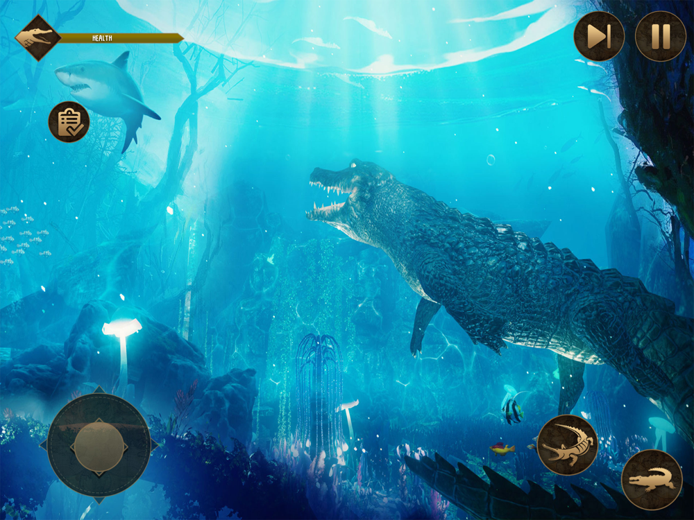 Let's play this game, in which the player will play as a hungry crocodile and hunt different animals. The crocodile hides itself in the deep water and sneakily attacks your hunt. Kill multiple animals when they come to drink water from the river. Be an angry crocodile and hunt different wild animals in the underwater to eat them. The wild crocodile hunt different kind of the animal like a zebra, warthog, wildebeest, hyenas. You have played many crocodile games, but play this you will forget others. In this game, you will experience the thrill of attacking prey. The crocodile is born and spends a good time with family. Then another wild crocodile attacks them and kills your family. The newborn hides itself in deep water to save himself from the enemies. Now the newborn takes revenge from your enemies and attacks to kill them using hunting skills. After some time, wild enemies will come into their territory to attack on. Now the crocodile will fight him and win the territory from the enemies. The hungry crocodile eats the fresh fishes, deer, rabbits and other wild animals to maintain your energy.