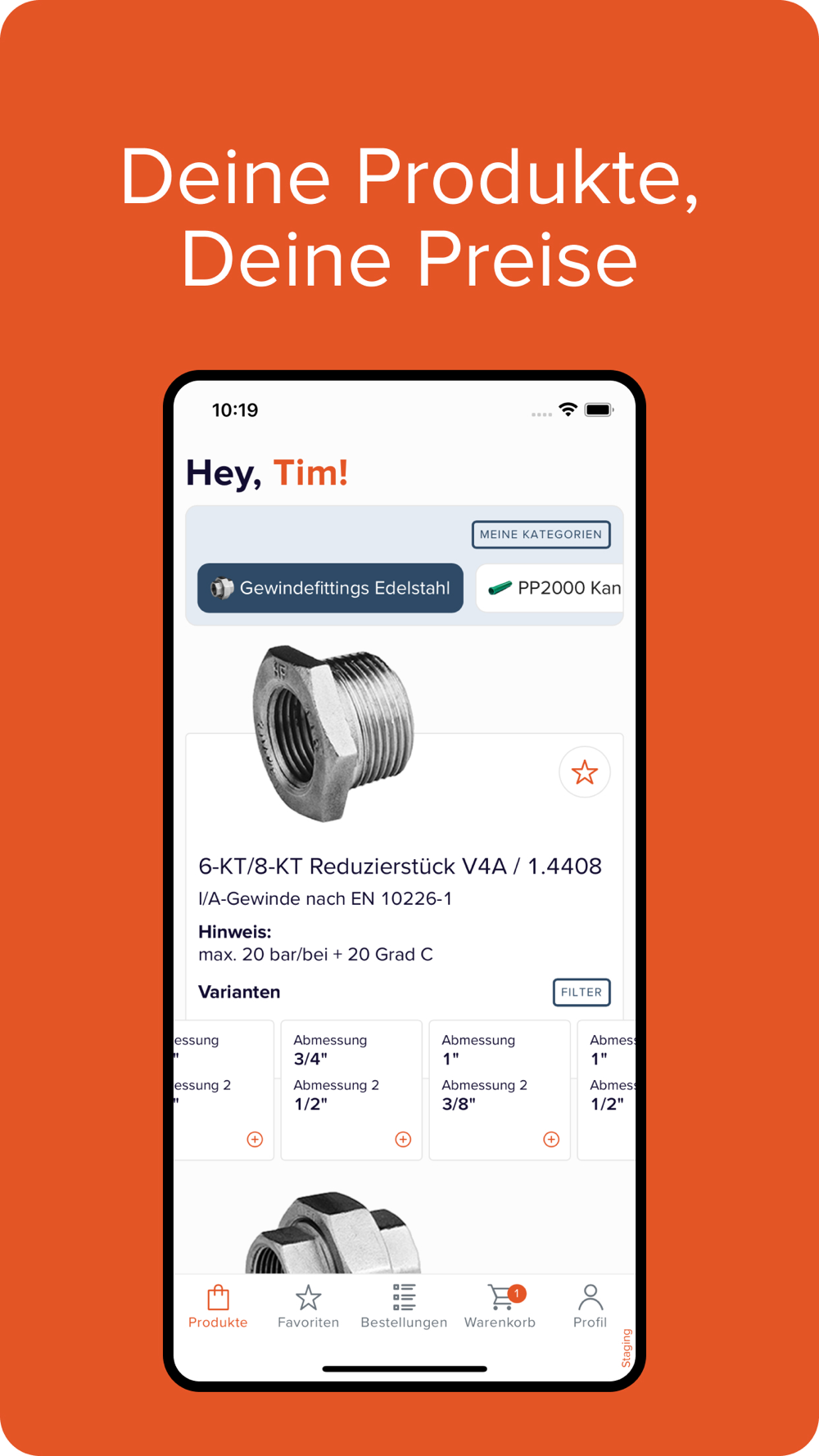 gültigen Preisen unseres Fachgroßhandelspartners profitierst Du selbstverständlich auch in der App. Die im Vorfeld festgelegten Preise geben Sicherheit und sorgen zugleich für einen fehlerfreien, optimierten Bestellprozess.