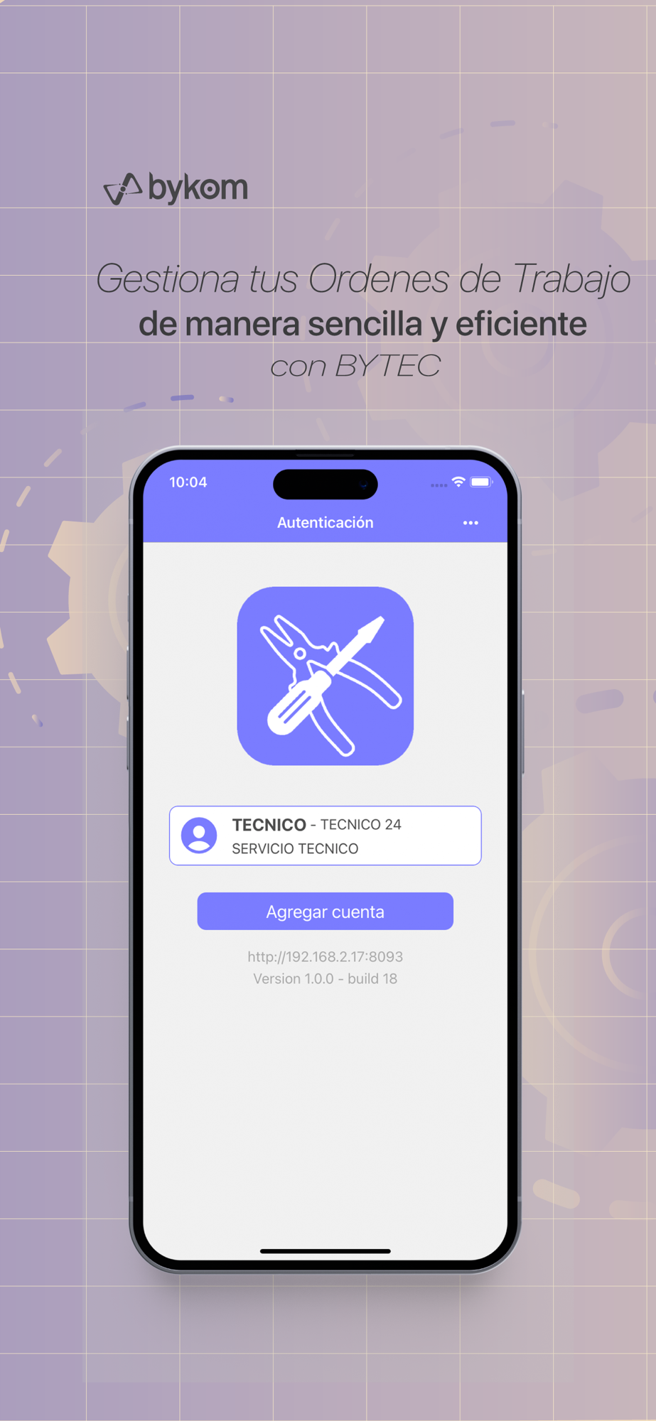 BYTEC es una herramienta que permite a los técnicos gestionar las órdenes de trabajo asignadas en el Panel de Service Bykom, consultar los datos del cliente y la alarma instalada, incluyendo historial de services.