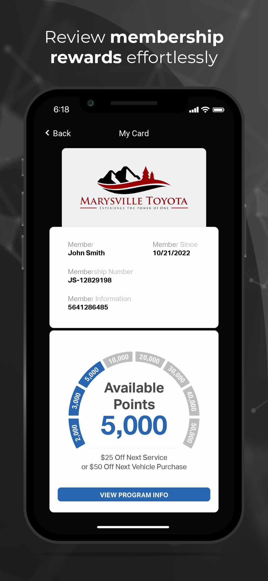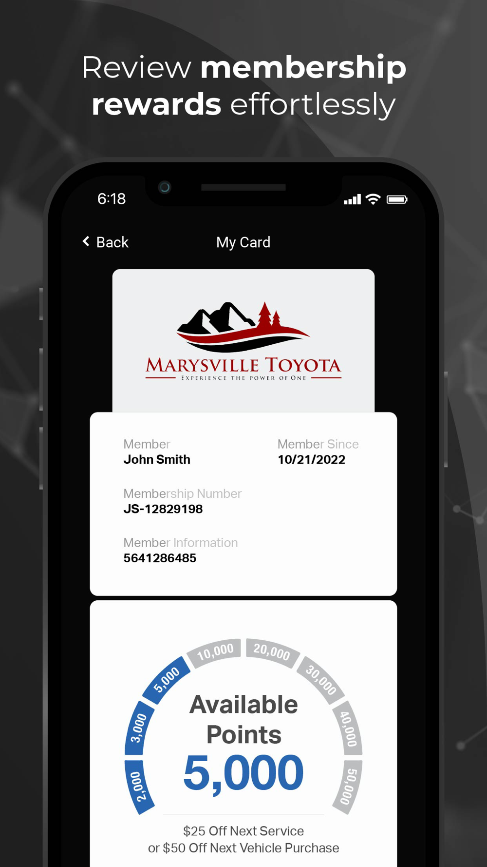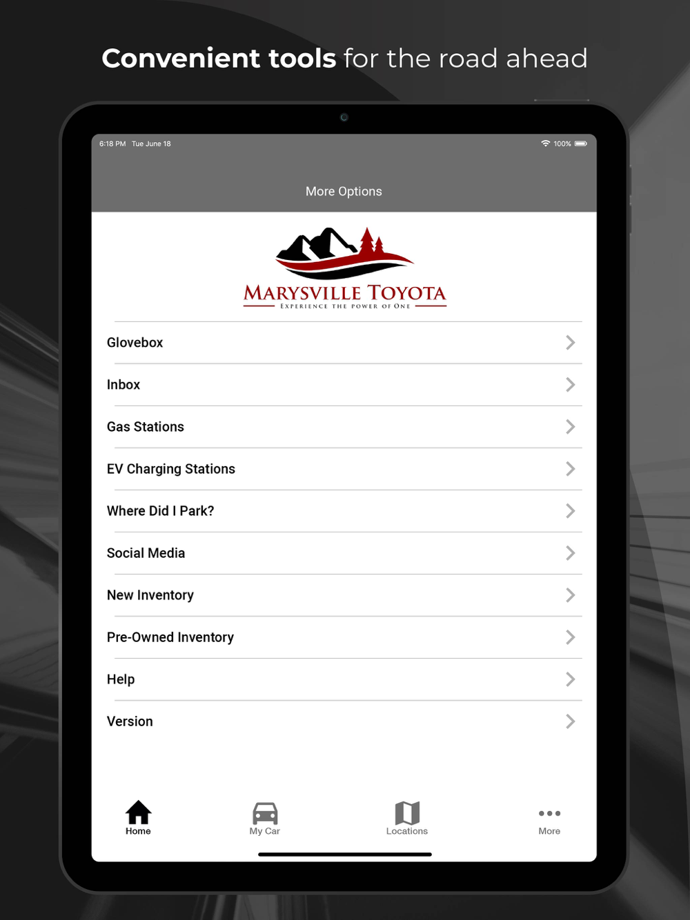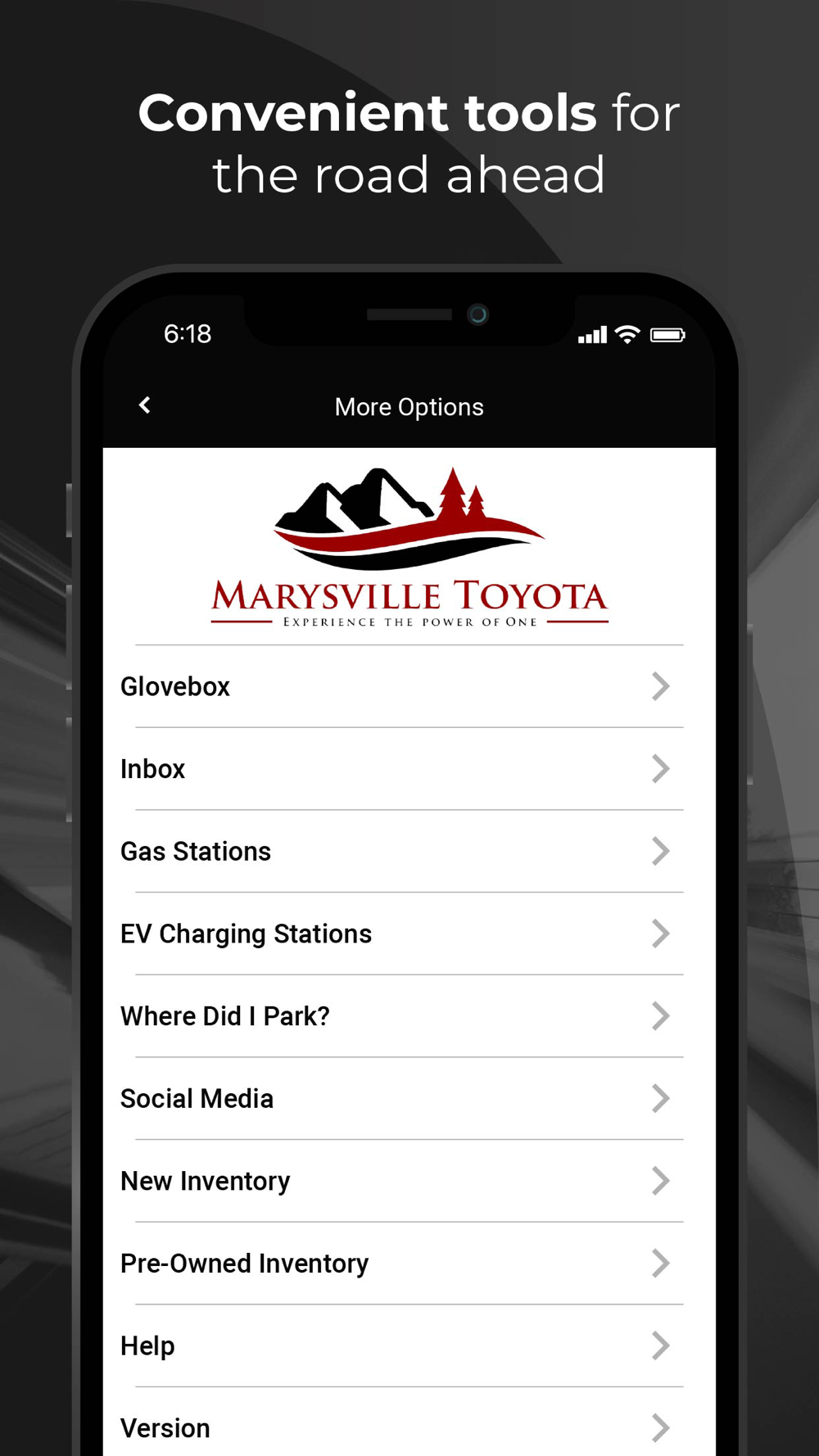 The Marysville Toyota has This app allows you To view And track your participation In the dealership's Loyalty program and to view the service history of your vehicle. The dealership has locations In Marysville WA In addition, you are eligible for exclusive deals on service made available only to Mobile App Users!