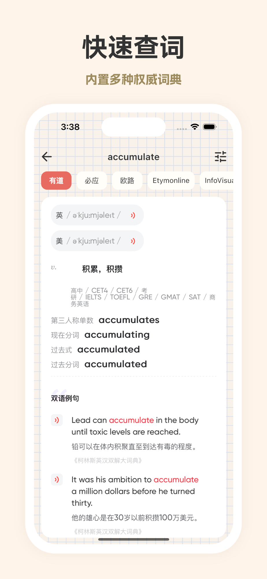 支持金山、欧陆、有道、朗文、牛津、剑桥、柯林斯等权威词典