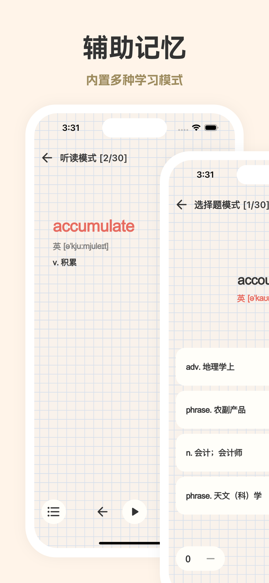 听写模式:掌上复读机,支持自定义播放次数、循环播放