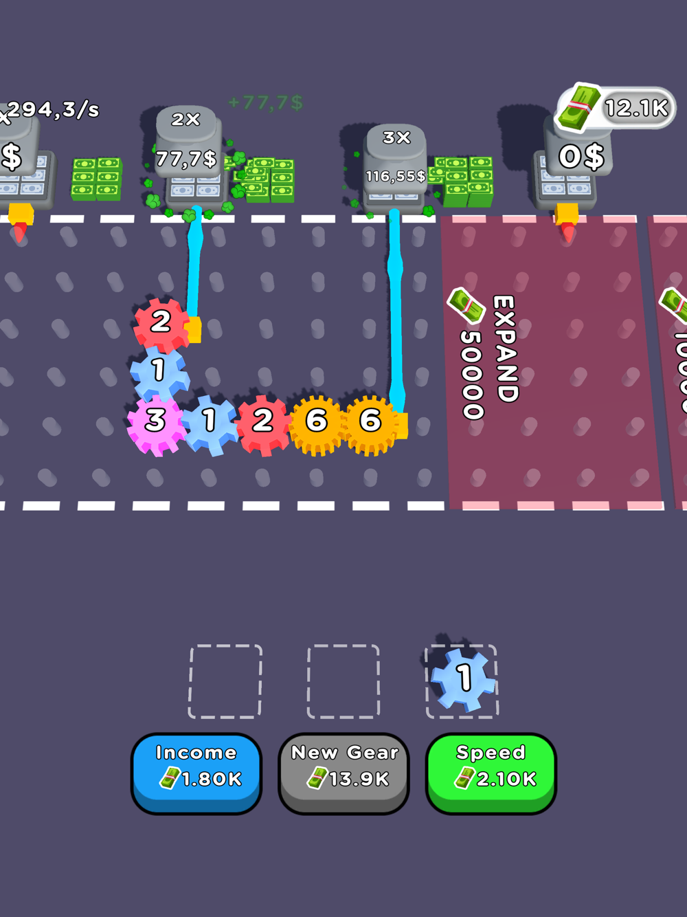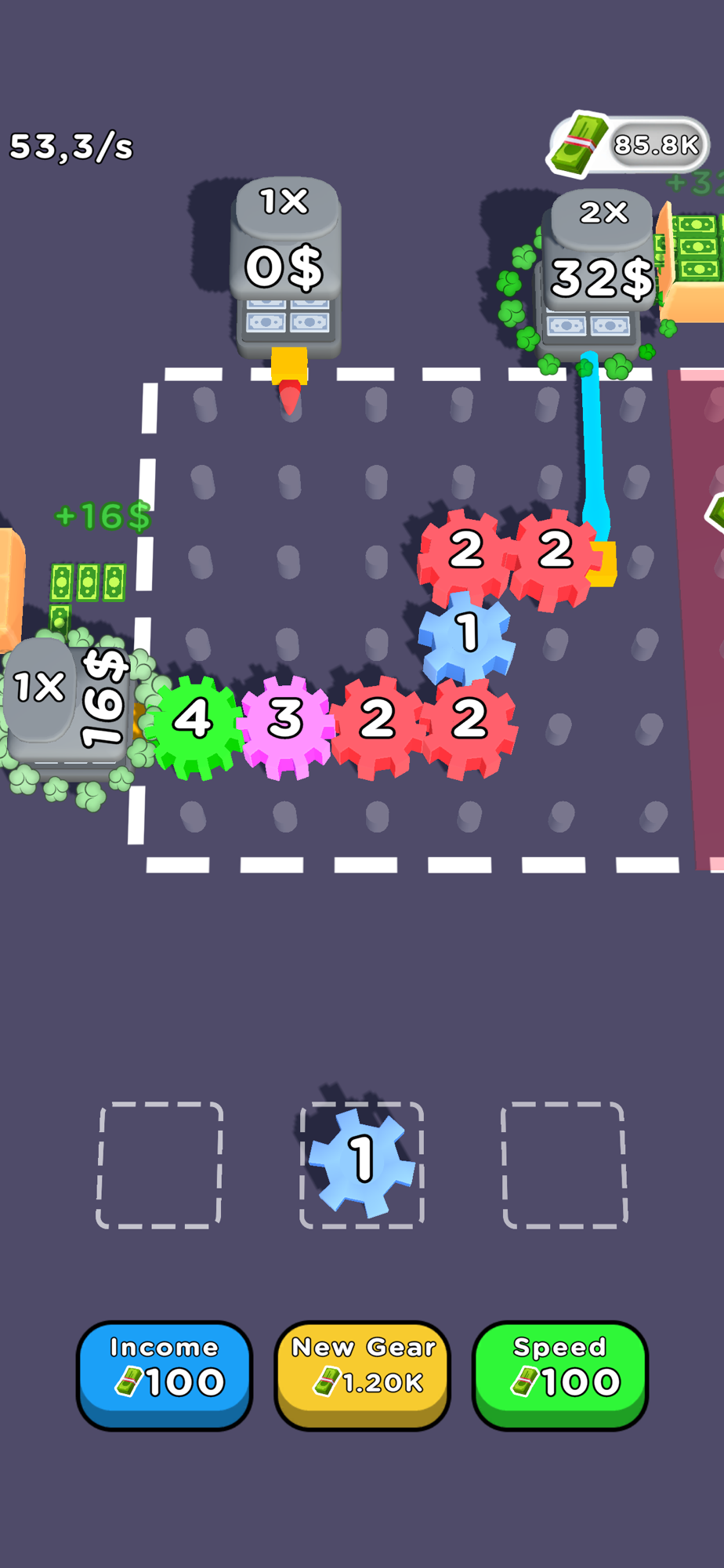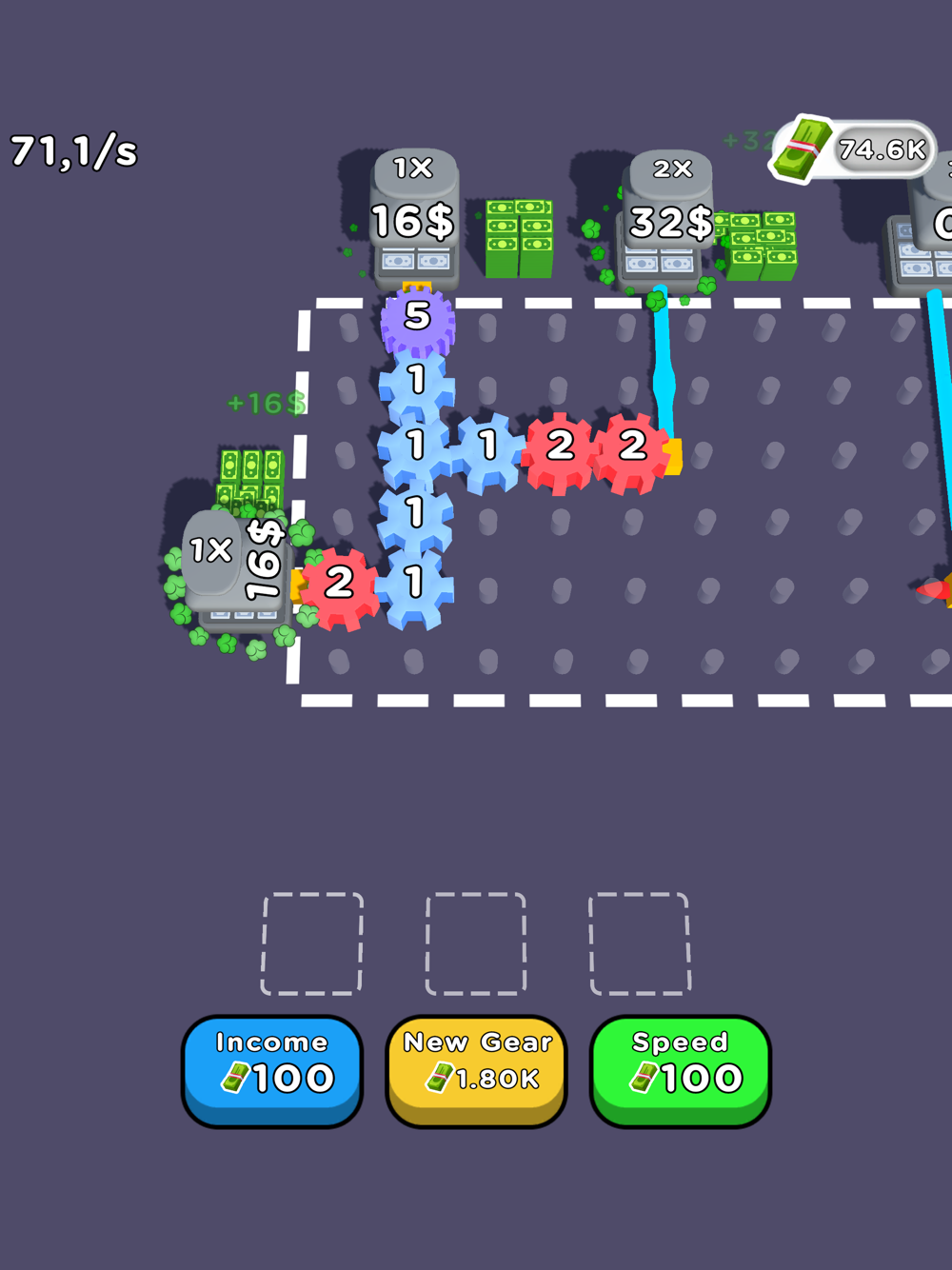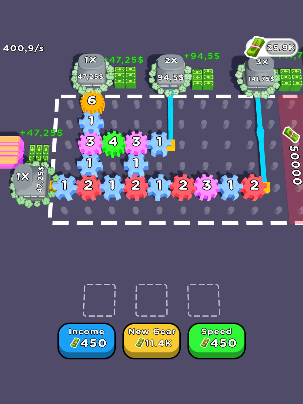 Merge gears drag drop them to field run machines with pipe connections and print money!