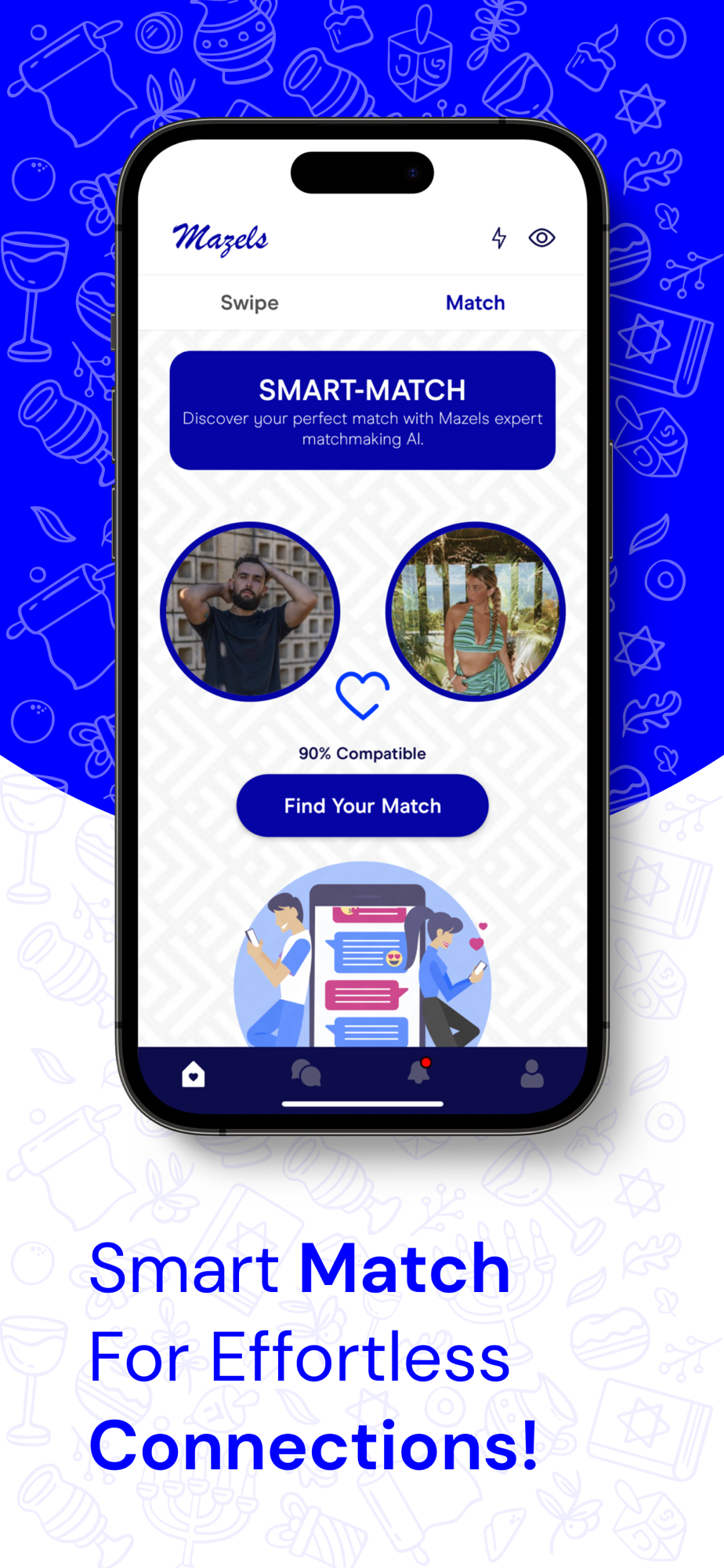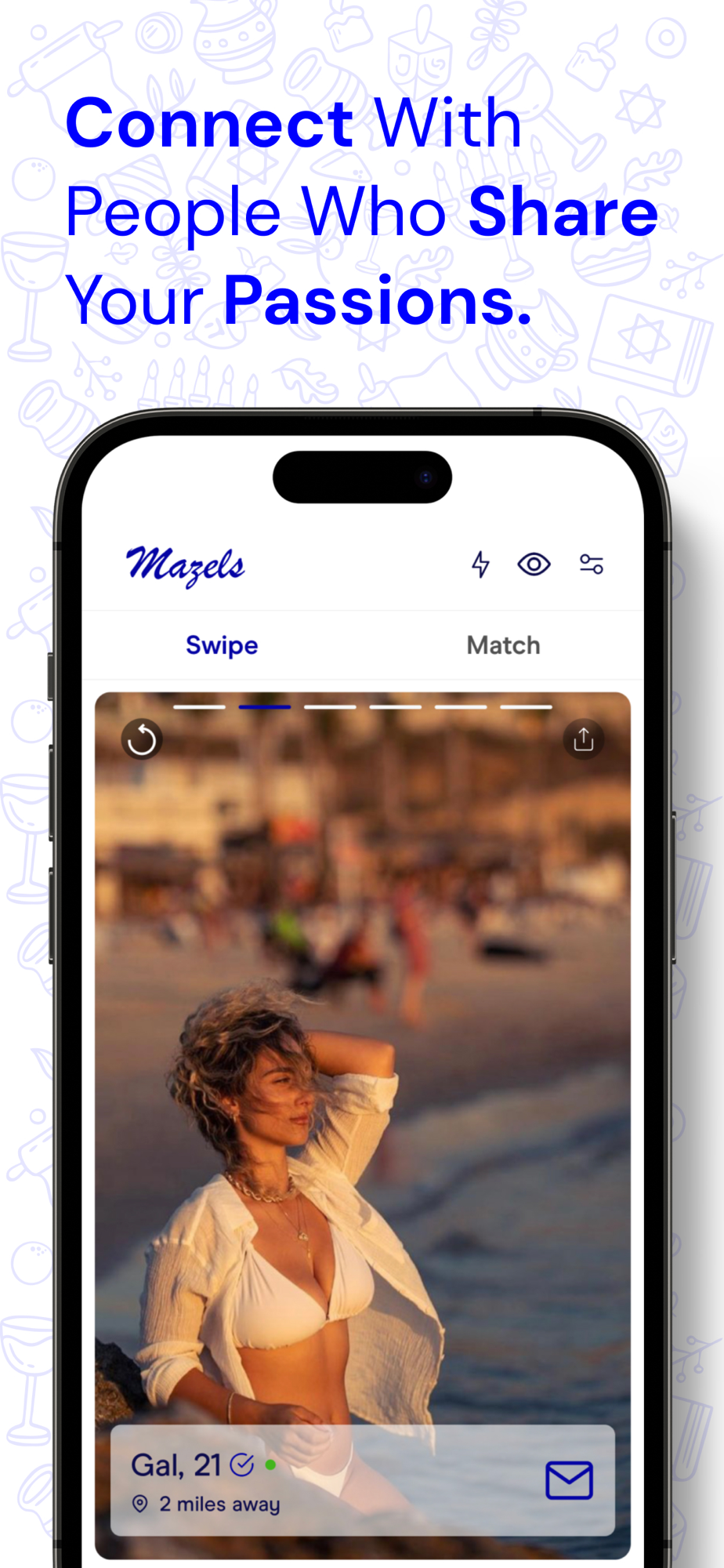 As a community-driven app, we're more than just a dating platform. We bring Jewish people together, fostering meaningful connections that can last a lifetime. With Mazels, you're in great hands.