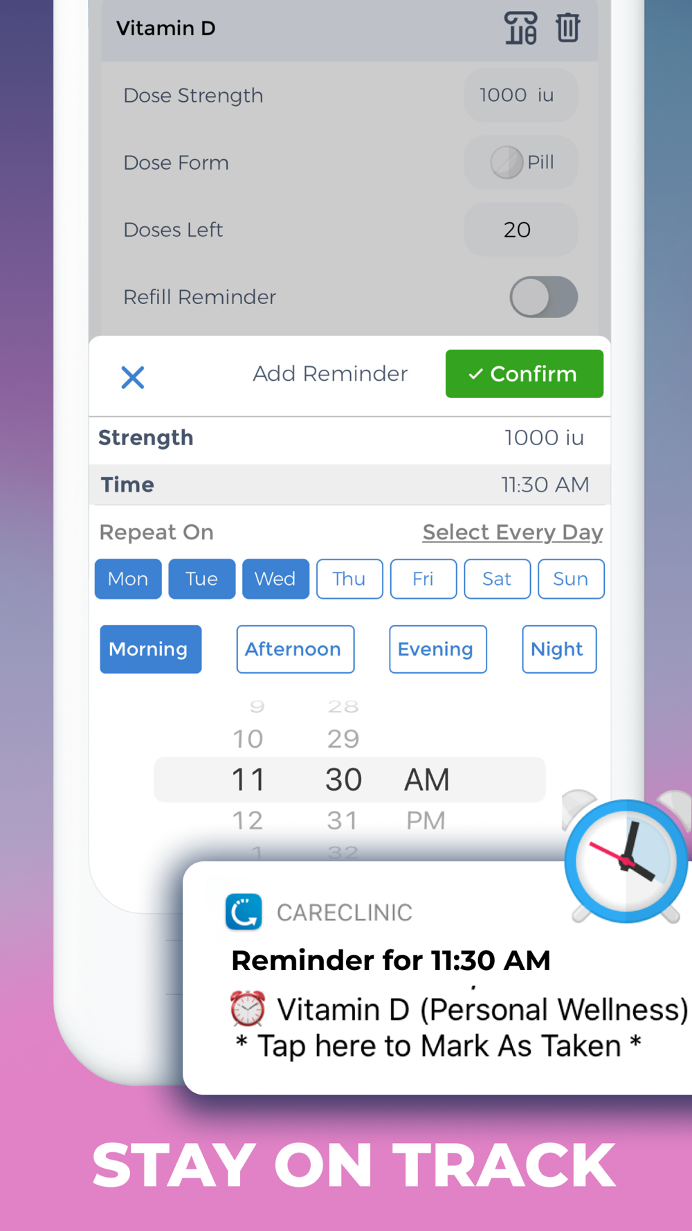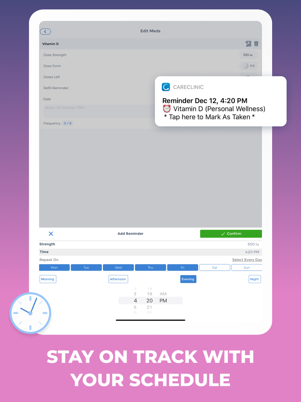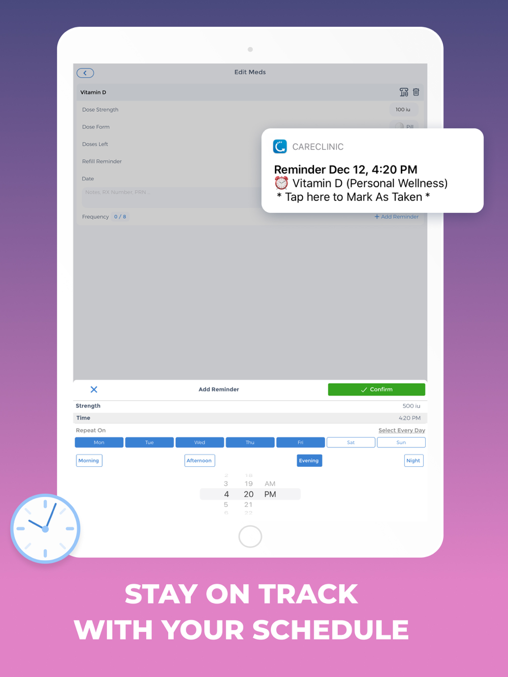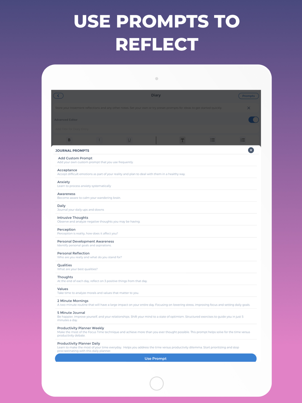 Never miss a medication, appointment, or therapy session with our handy reminders and notifications. Customize your notifications to suit your needs, such as daily mindfulness practice or weekly check-ins with loved ones.