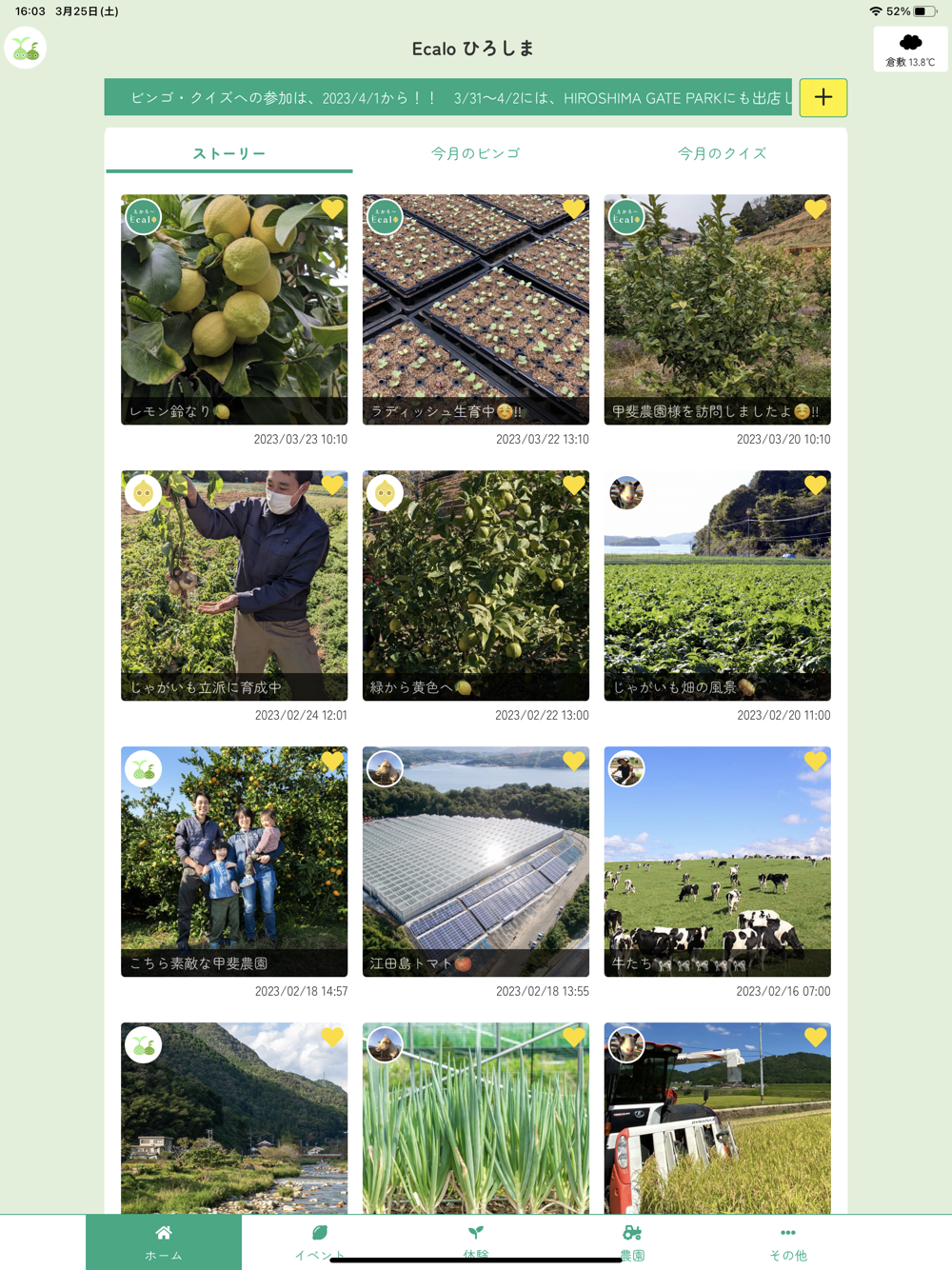 『Ecalo(えかろ~)ひろしま』は、広島各地の「えかろ~」な一次産業の魅力をお届けする、広島初の”スマート体験農園”プロジェクトです。