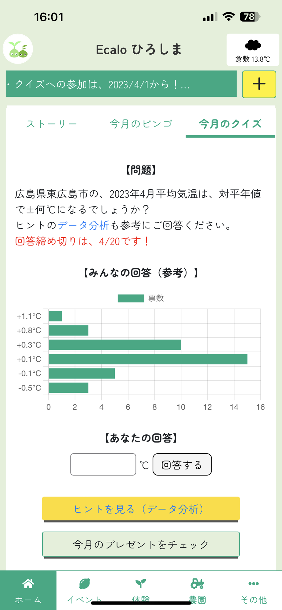 三択式問題など、「今月のクイズ」のバリエーションを増やしました。