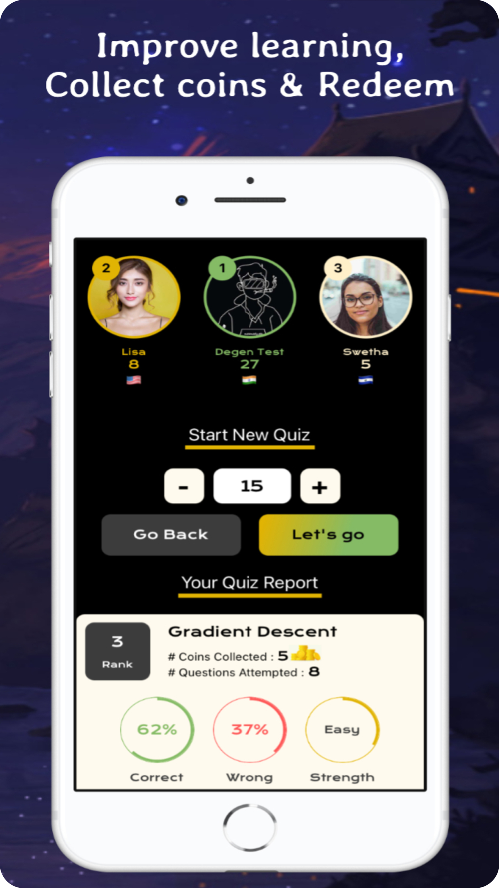 Overall, our mobile app provides a comprehensive social learning platform for top professionals in AI, Blockchain, and Crypto. It uses AI evaluation, education via entertainment, micro-learning, quizzes, audio bytes, shows, seasons, and episodes to deliver an engaging and effective learning experience.