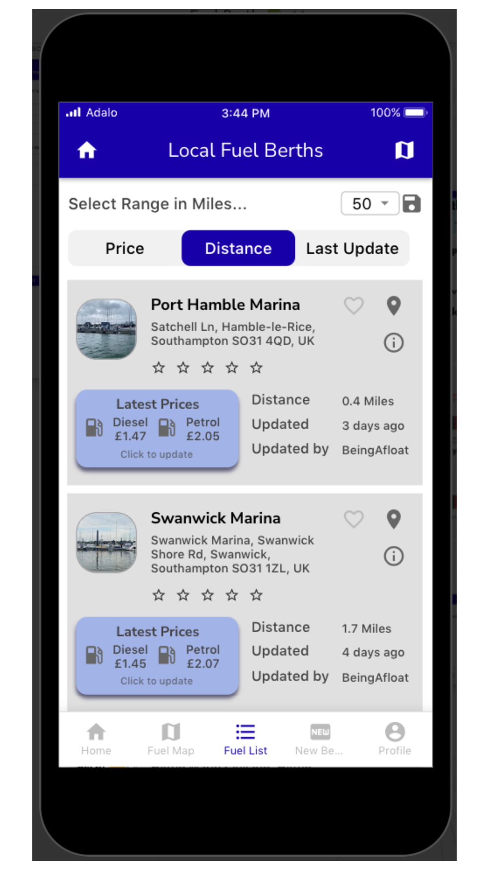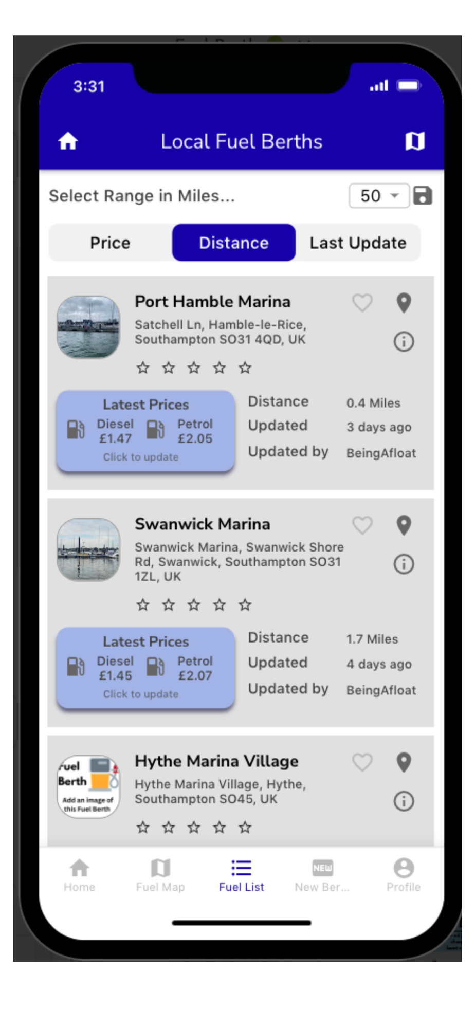 Fuel Berth is an app to assist boaters to find the most cost-effective fuel for their boat.