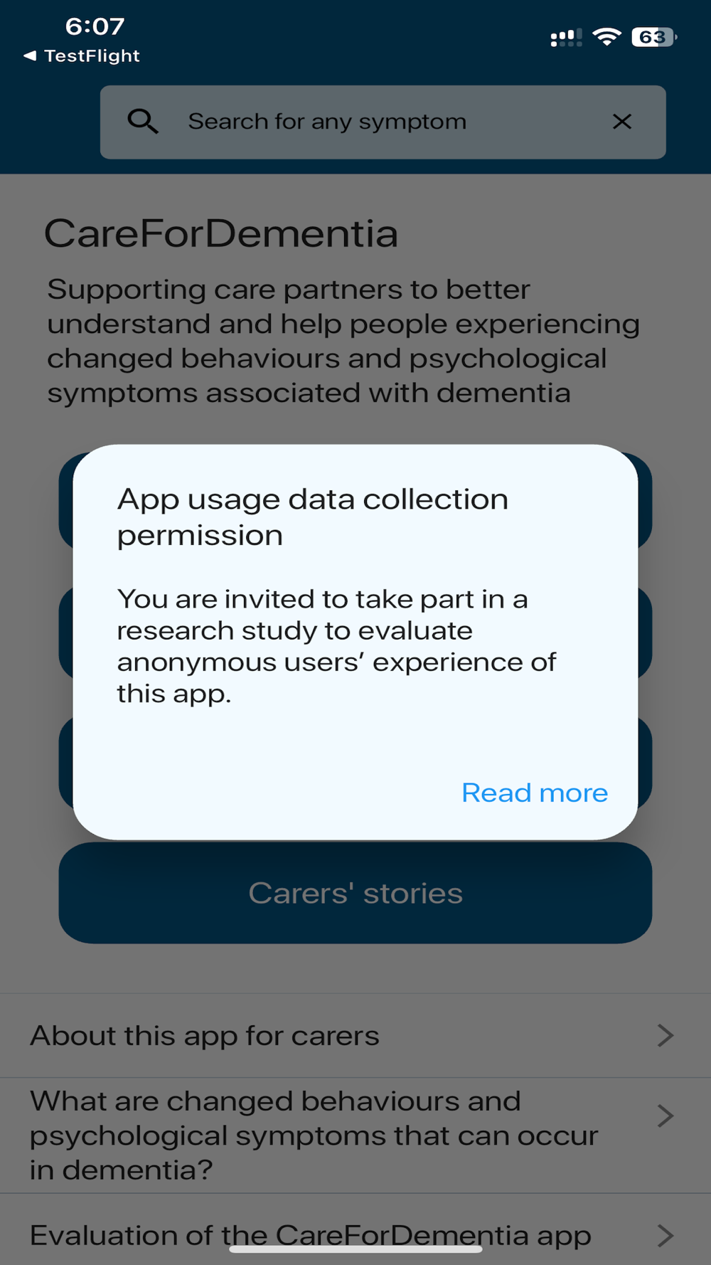 It is strongly recommended that those providing care to a person with dementia seek assessment and guidance from an appropriate health professional before implementing strategies suggested in this app. It is intended that the information included in this app be read in combination with and subject to advice from health professionals experienced in supporting people who present with changed behaviours. See the app for full disclaimer.