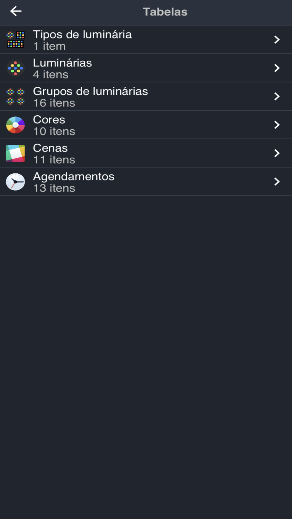Além de acionar as cenas, será possível editar as tabelas de cores, aparelhos, grupos, cenas, agendamentos e configurar todos os parâmetros do Lumikit ARQ 2.