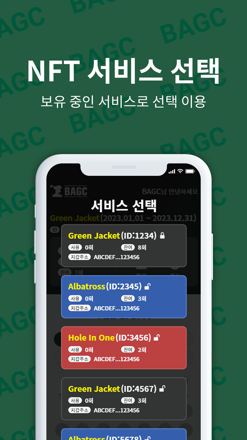 BAGC NFT 보유자분들을 위한 특별 골프 예약 앱 입니다.