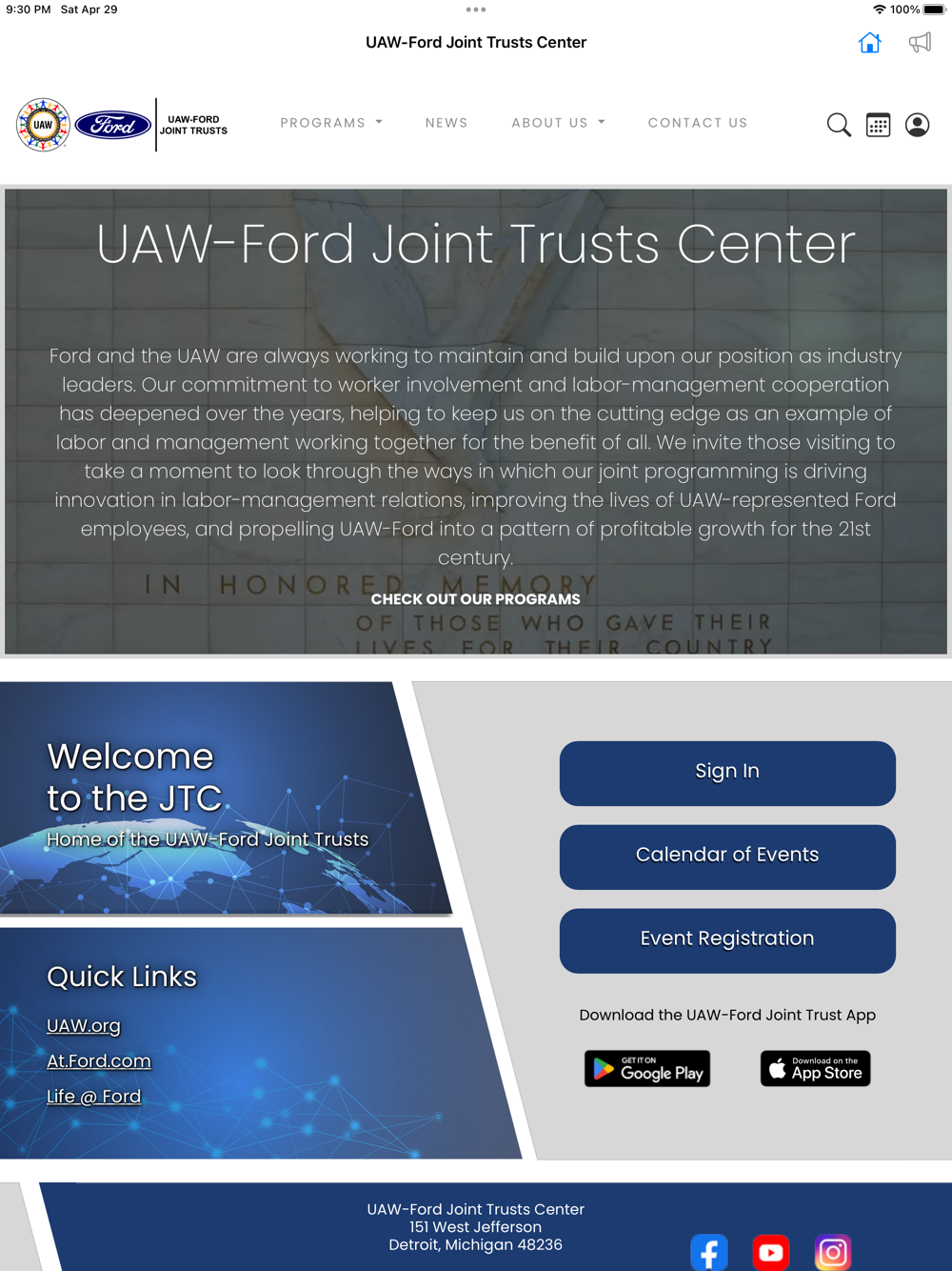 The UAW-Ford JTC Mobile app is here! Download today and check out all the great features we have to offer. With up-to-date news, automatic push notifications, calendar of events, and more, the JTC Mobile app is your one stop shop for everything you need regarding your negotiated joint programs. This is only the beginning. Future updates will bring more power to your fingertips making the JTC Mobile app a must have!