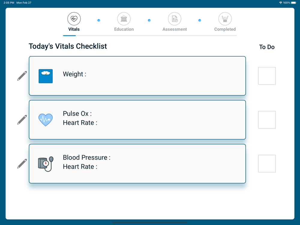 Apollo allows patients to self-report various vitals metrics on a daily basis, and instantly delivers this information directly to caregivers. Users can create patient-specific video courses for patients to complete on a daily basis, while monitoring their progress in the course.