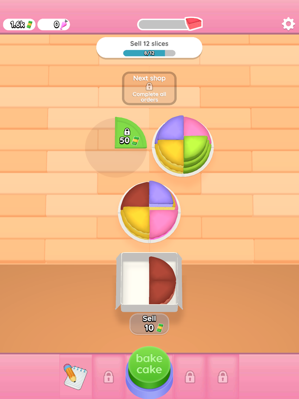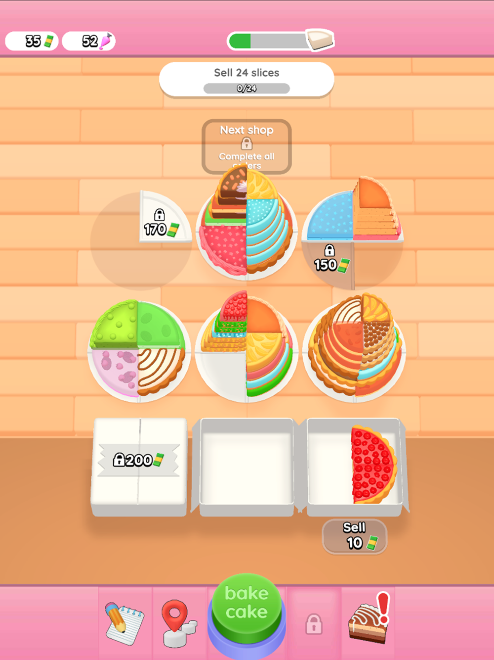 Gather the same cake slices in the box and sell them! Unlock new plates and grow your cake shop.