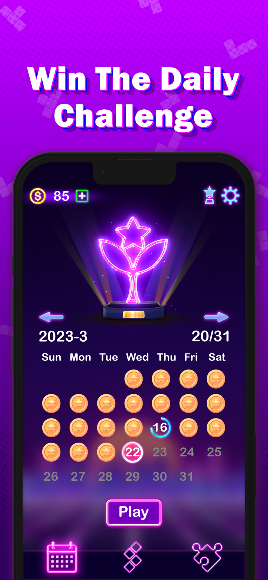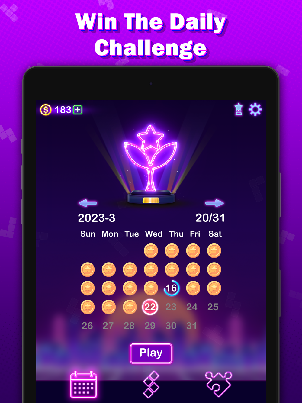 Download Glow Block Puzzle game and share it with your friends and family. Challenge them with your score record and see if they can beat your score!