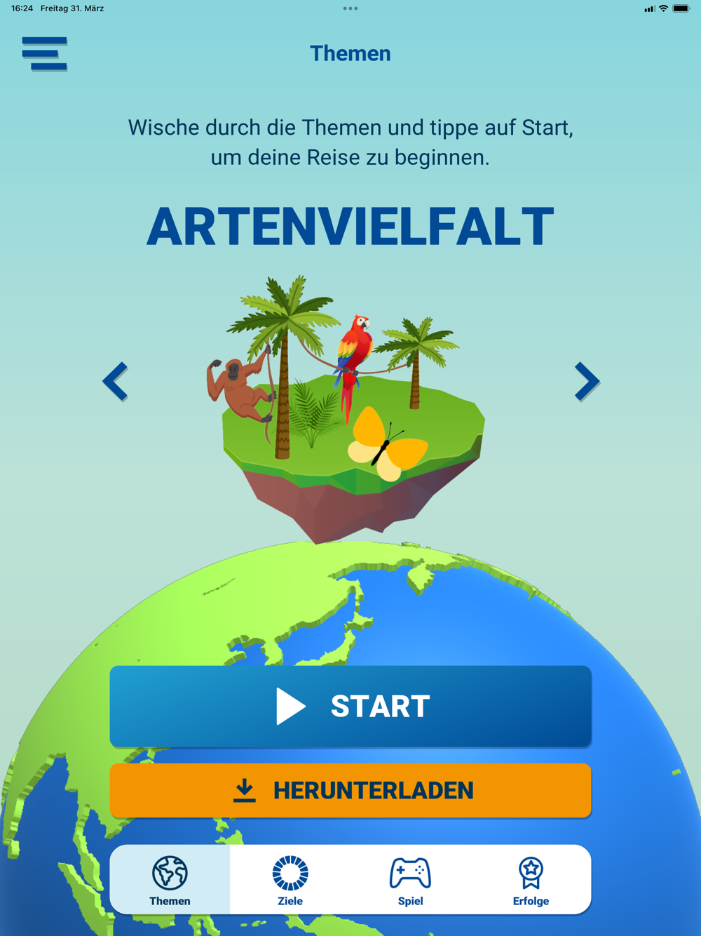 The app aims to provide children and adolescents with a playful approach to the complex topic of sustainability and the 17 sustainability goals of the United Nations.