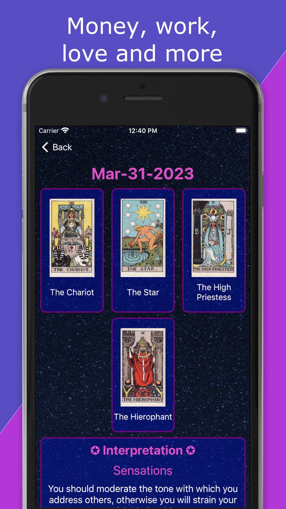 A very user-friendly interface, with realistic visual effects. All the Tarots offered by this app are totally free. The Premium version removes ads and allows unlimited daily readings.