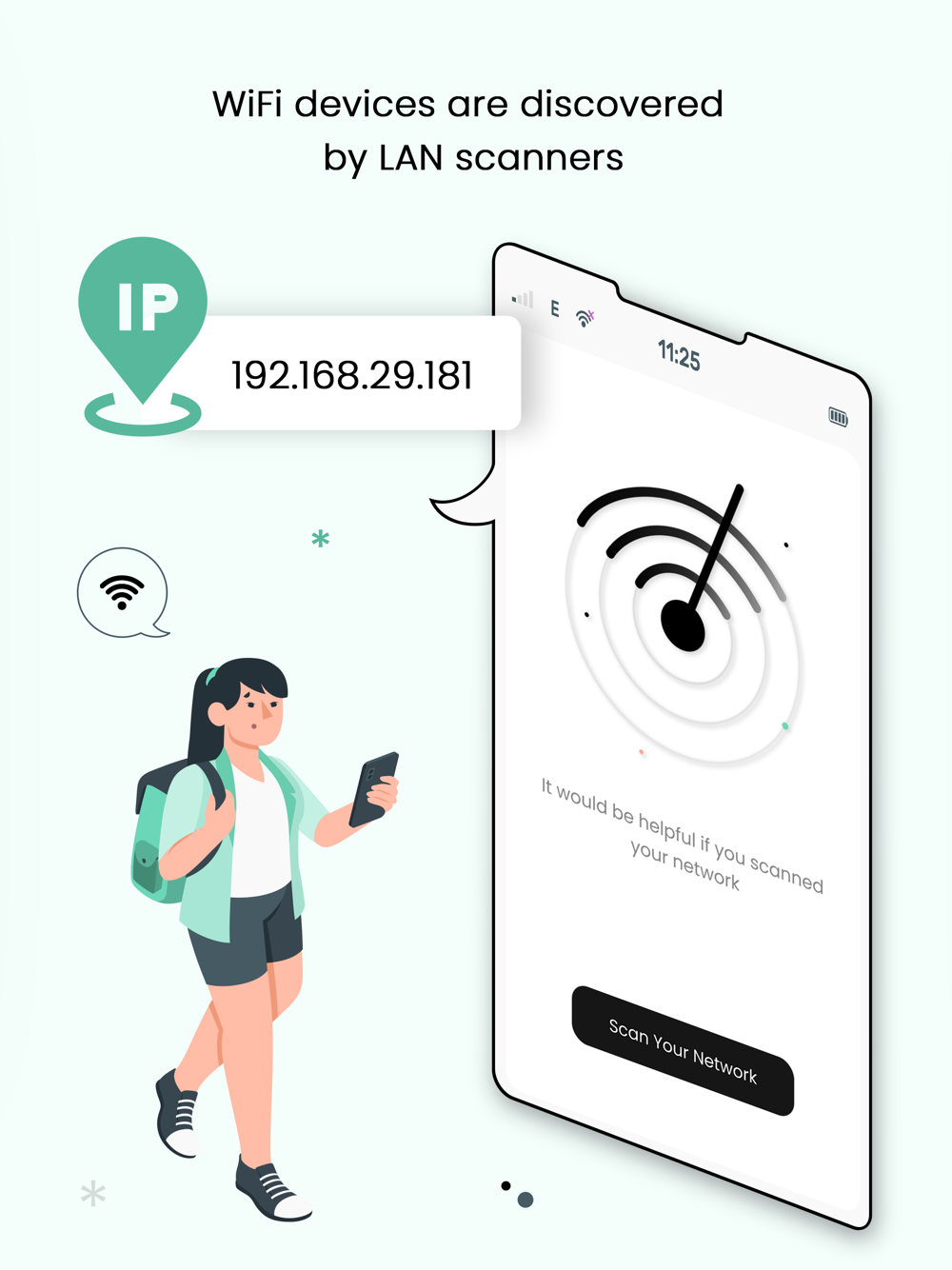 It is equipped with a fast wifi device discovery tool, including all the LAN device's addresses and names. Further, arbitrary device's reachability can be tested with the provided ping tool. Finally, it displays various useful information related to your wifi/cell connection.