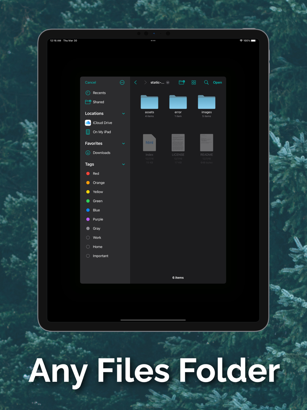 Note: Lamdi does not support opening website folders from third party apps. It only allows opening a website folder from iCloud Drive, On My Device, and Physically Connected External Storage Mediums.