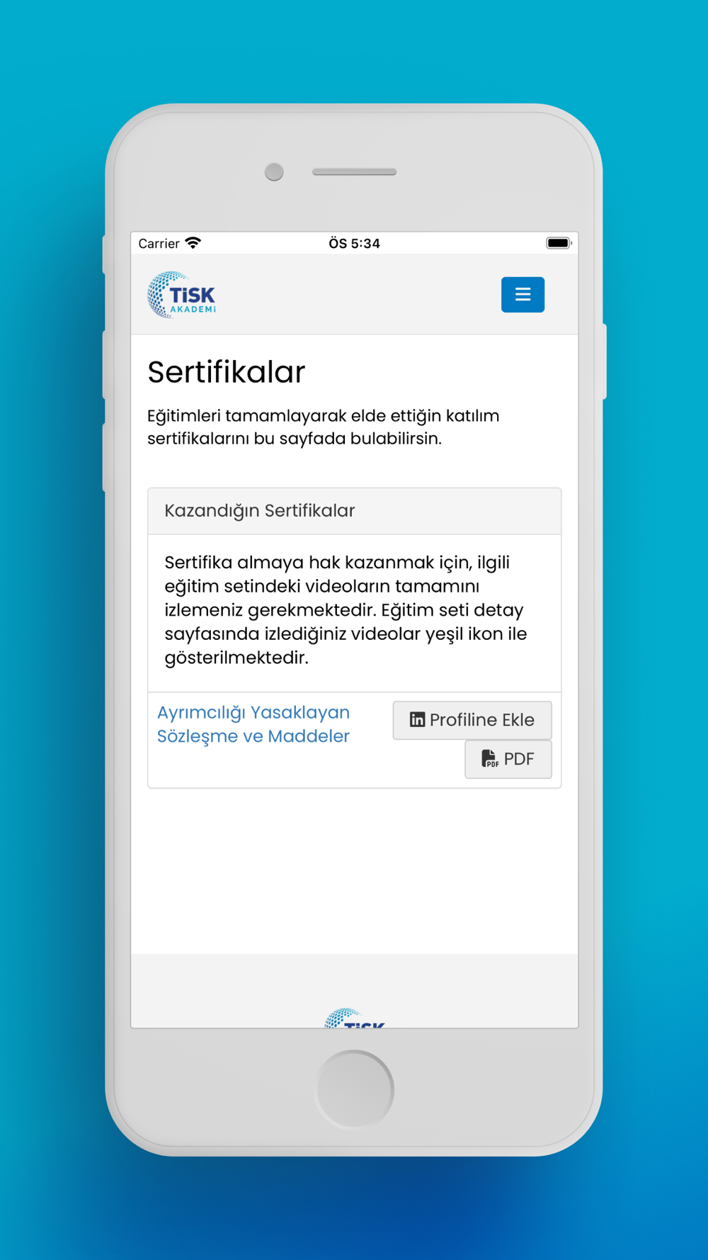 TİSK Akademi uygulaması ile nerede olursanız olun; ister bilgisayarınızdan, ister tabletinizden, ister cep telefonunuzdan eğitimlere kolayca ulaşabilirsiniz!