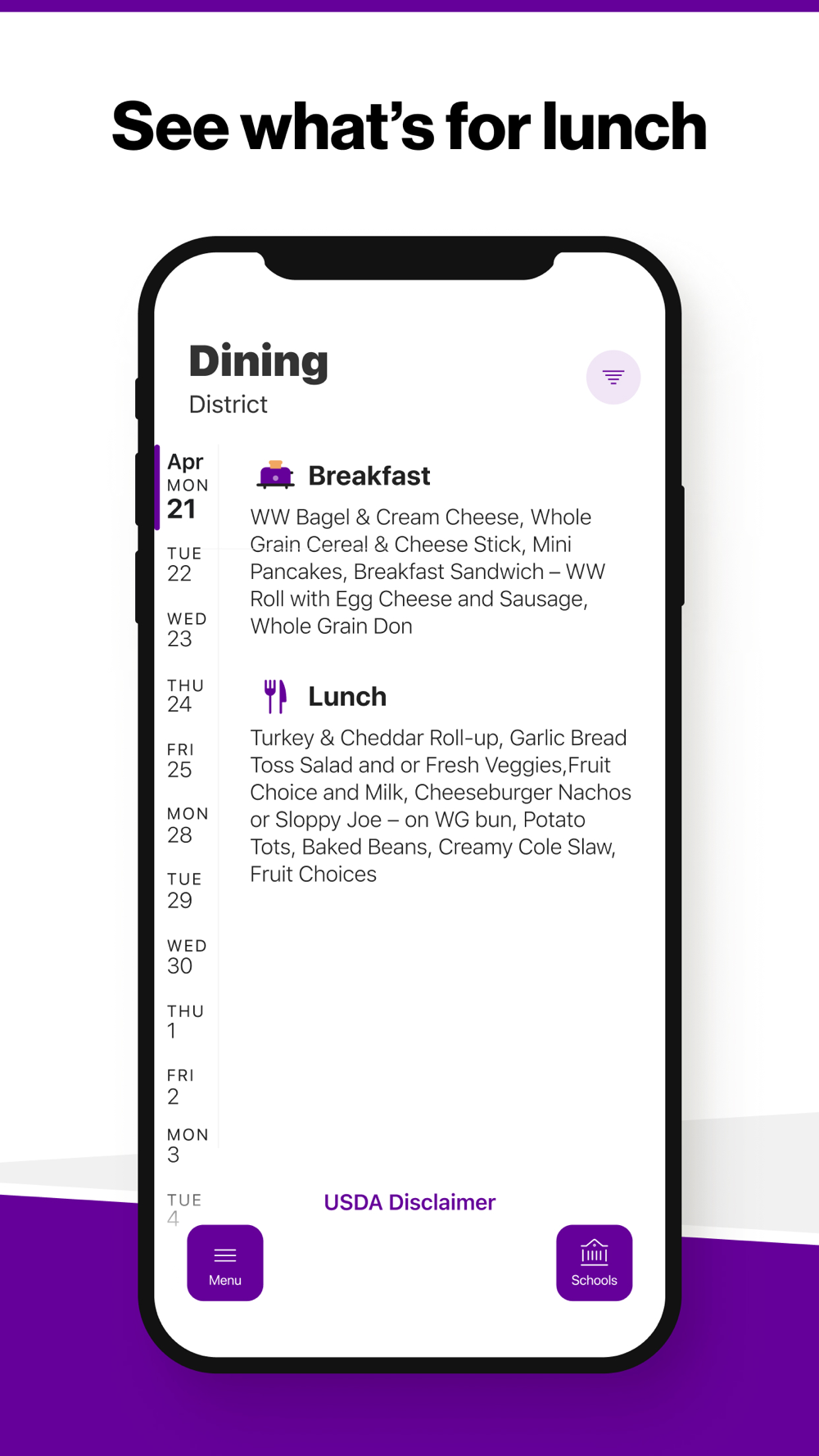 Within the dining section, you’ll find an easy to navigate, weekly menu, sorted by day and meal type.