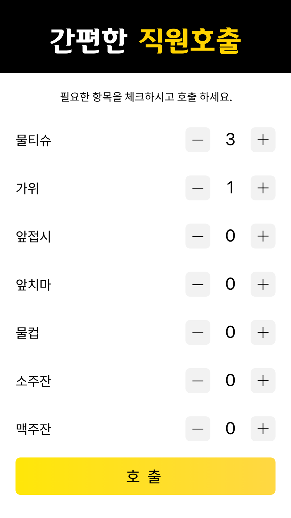 - 직원호출 : 고객의 간단한 요청을 실시간으로 알림