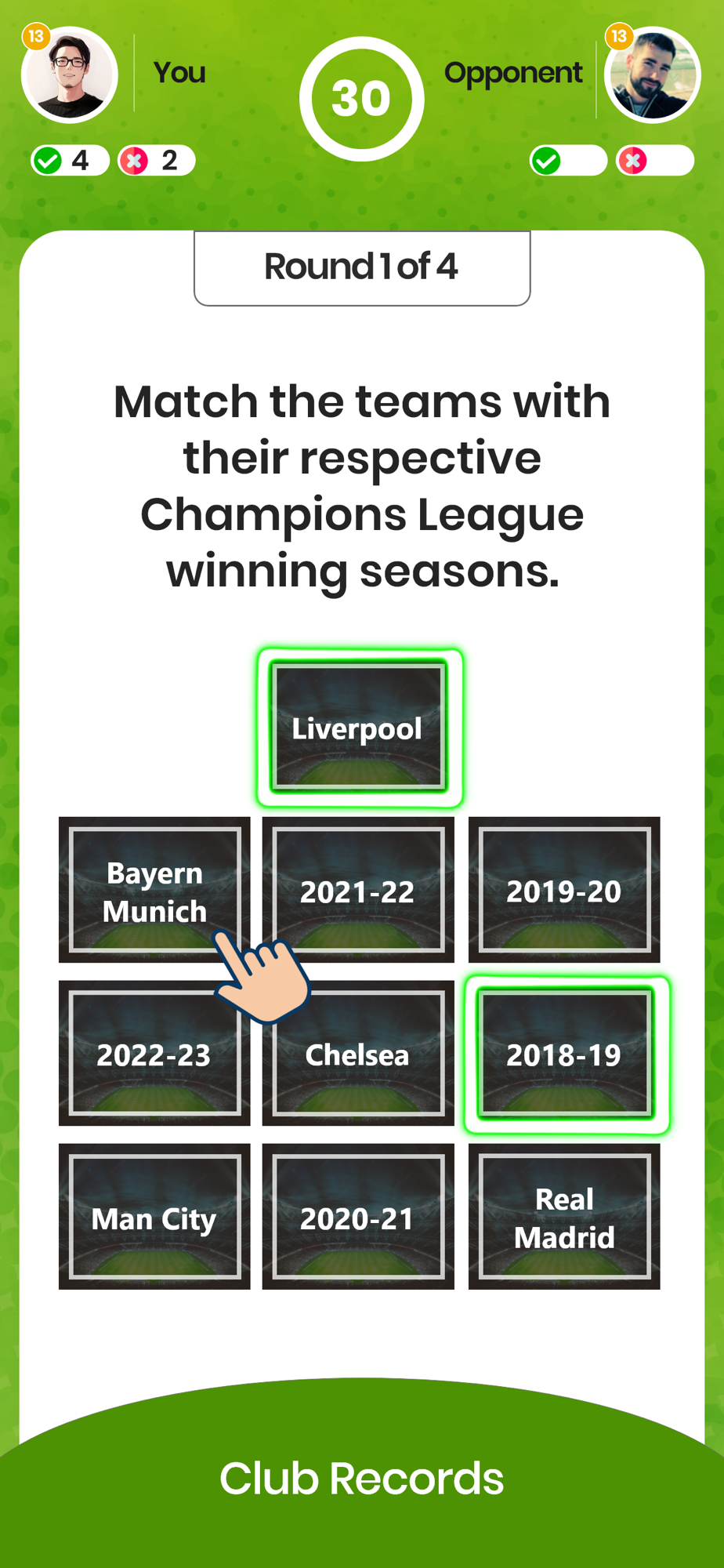 2. Kick-off your Football Trivia Career by engaging in a one-on-one battle with another football fan