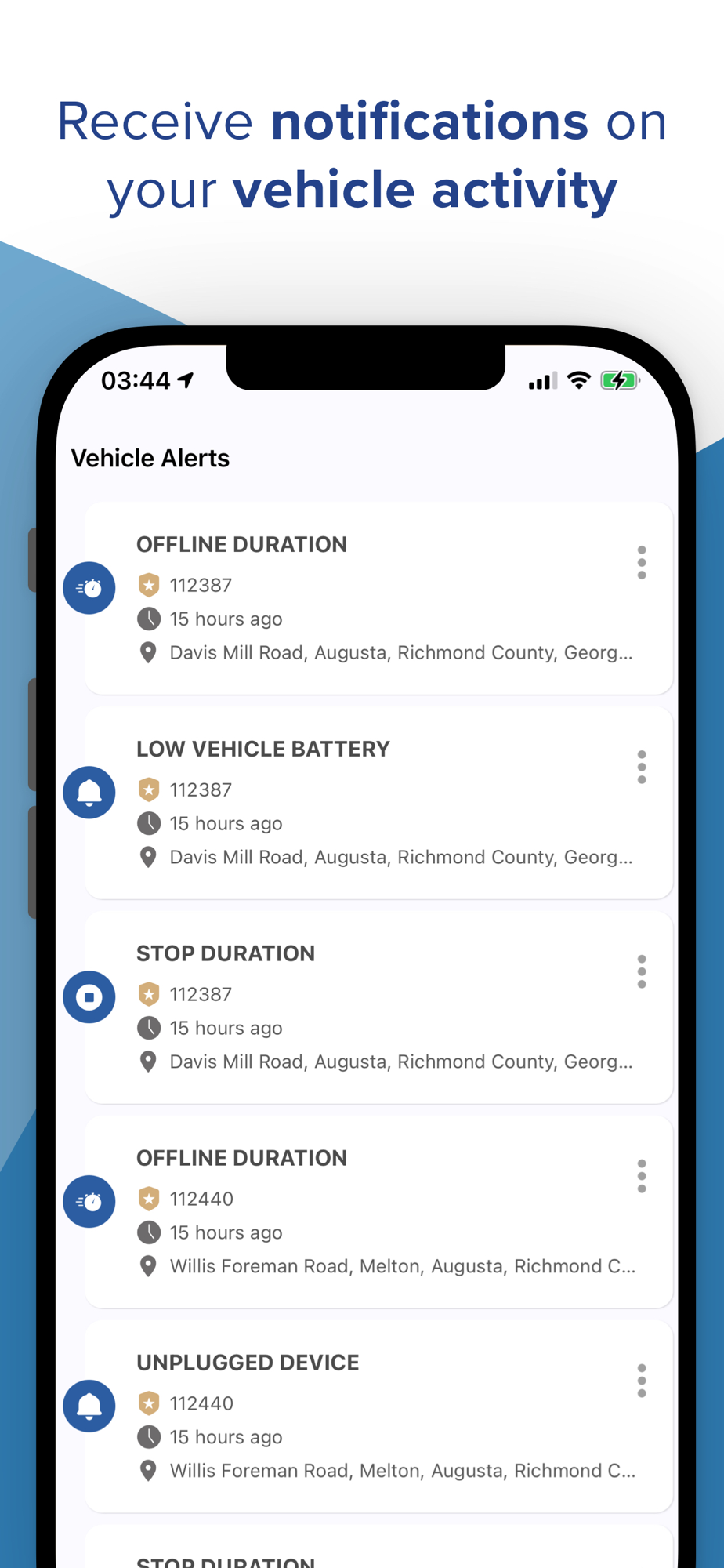 - Users will be able to monitor the speed of each vehicle and the battery life of each device simply by tapping on the vehicle icon located on the map - accurate to within 2.5 meters (6 feet) of the device. The location also updates automatically, showing the real-time GPS location of the user's vehicles.