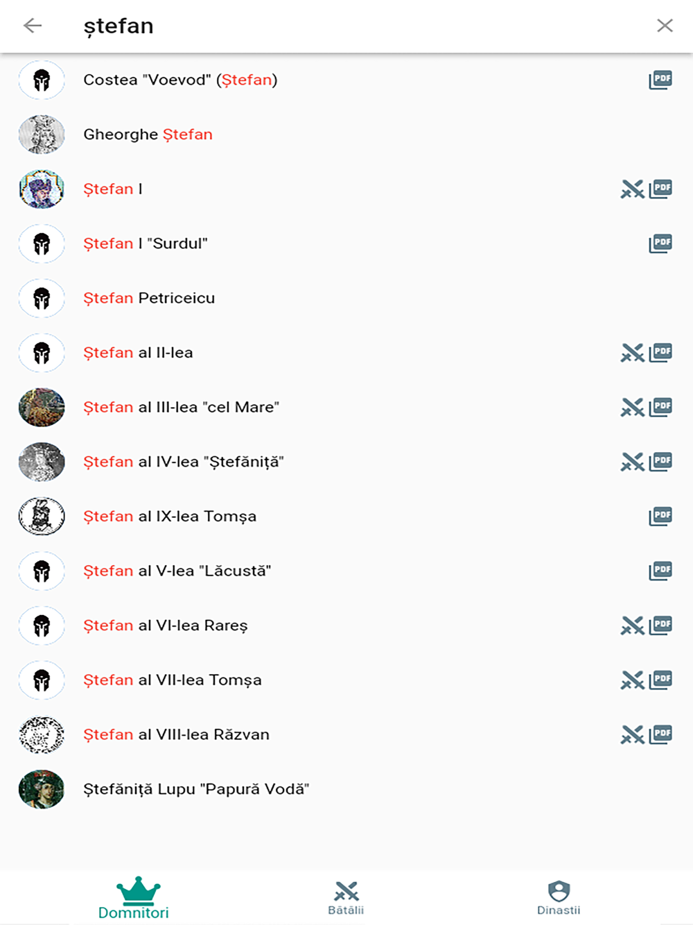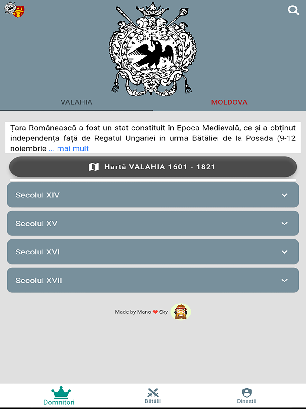 - ai acces la informații sintetizate despre domnitori și bătălii din perioada secolelor XIV-XVII doar în câteva secunde;