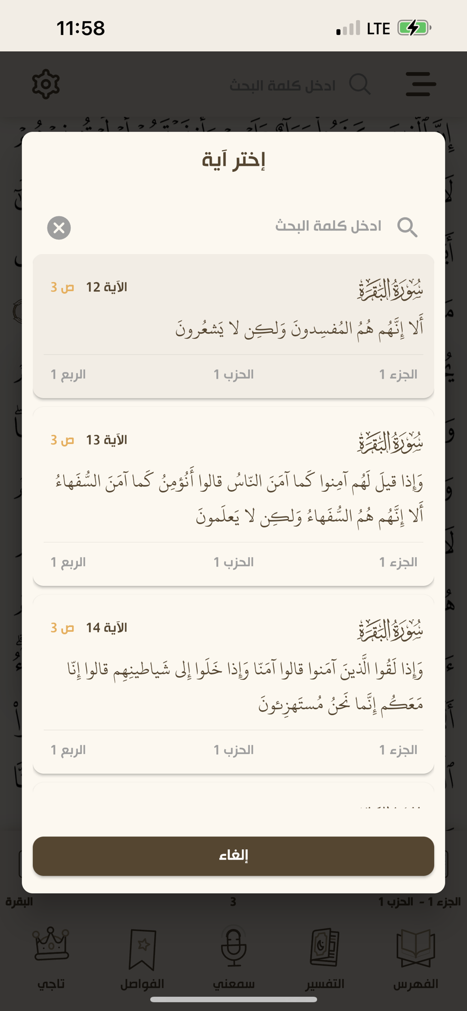 - امكانية نسخ الآية ومشاركتها مع الآخرين على شكل نص او صورة .