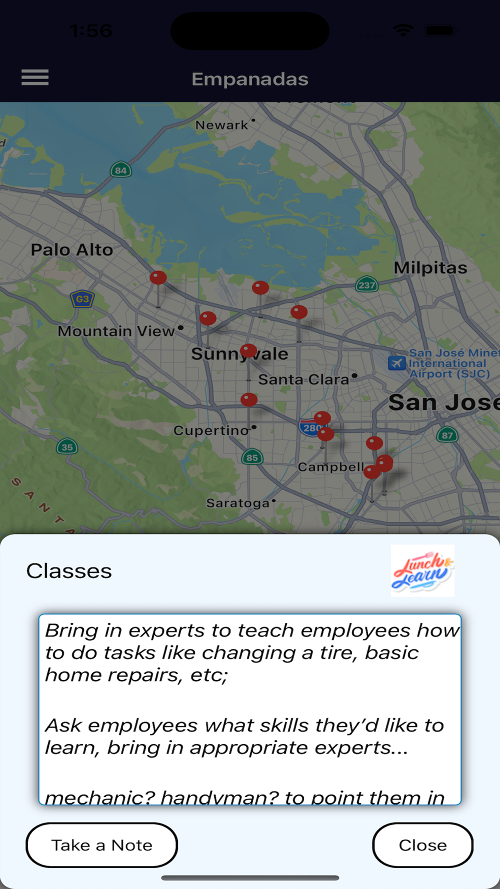 Save, retrieve notes & observations of lunch spots - and lunch & learn activities;