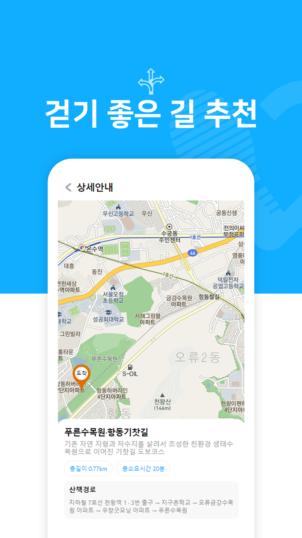 • 전국 각지 다양한 걷기 명소들을 추천하고, 경로 안내까지 해드립니다.