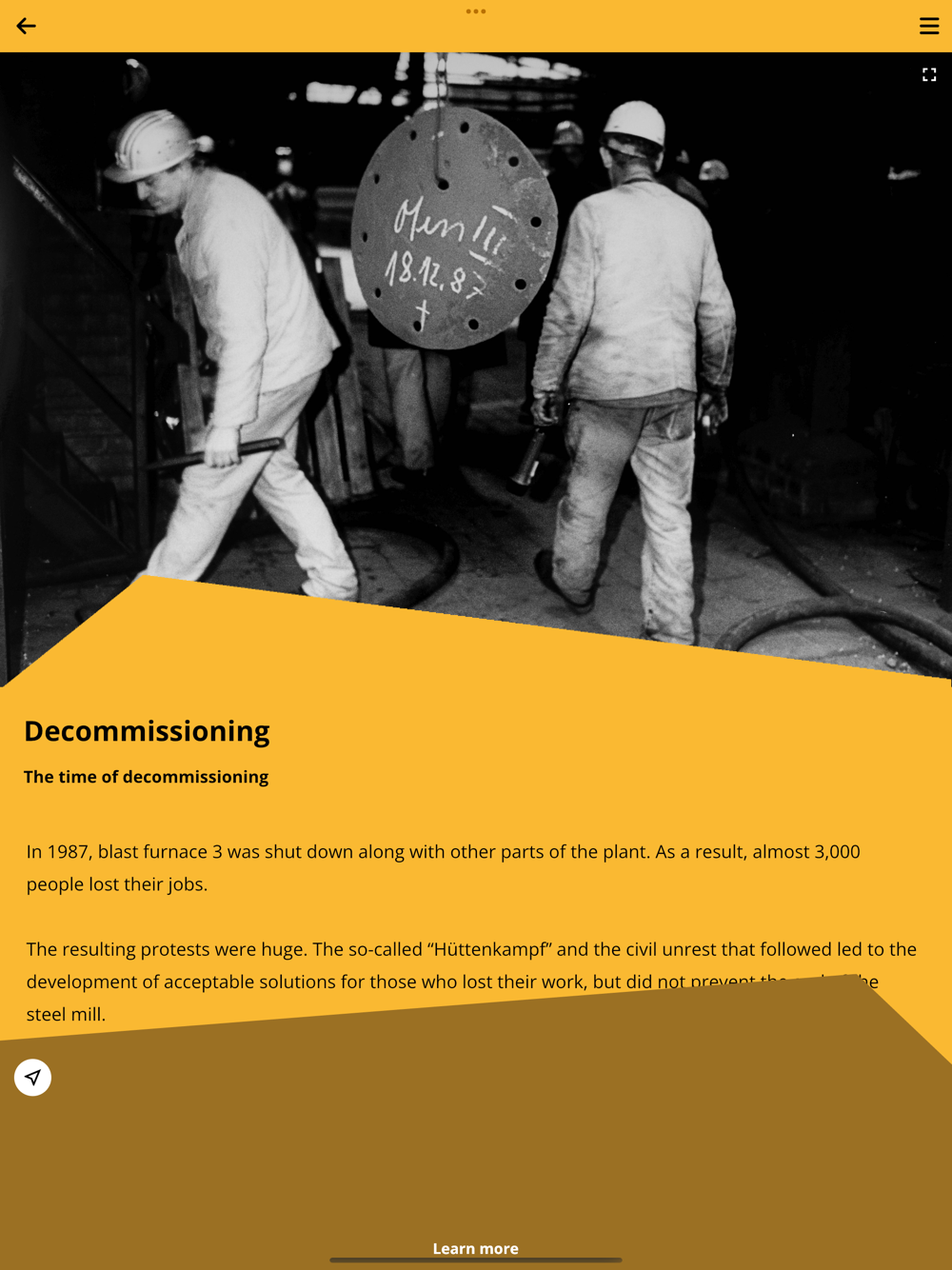 With the new museum app from the LWL Museum Henrichshütte Hattingen, the museum grounds and many exhibitions can be explored interactively and in your own unique way. With one of our digital guided tours, visitors can learn about four circular routes and other special exhibitions available to visitors.
