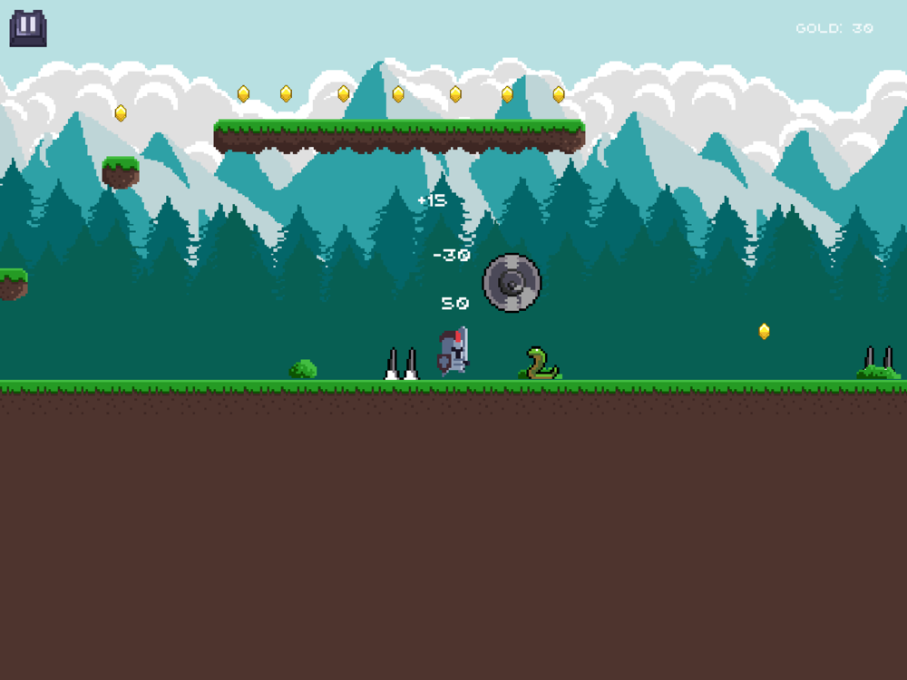 Сollect gold coins while passing levels and use them to improve the Knight's health and power of attack. As the knight becomes stronger and he can easily overcome the obstacles and defeat bosses.