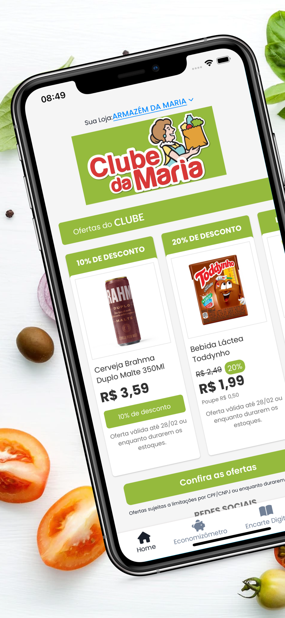 Com o aplicativo Clube da Maria você tem acesso aos descontos exclusivos do Clube. Além disso, você pode fazer suas compras pelo celular em qualquer horário e agendar a entrega das mercadorias.