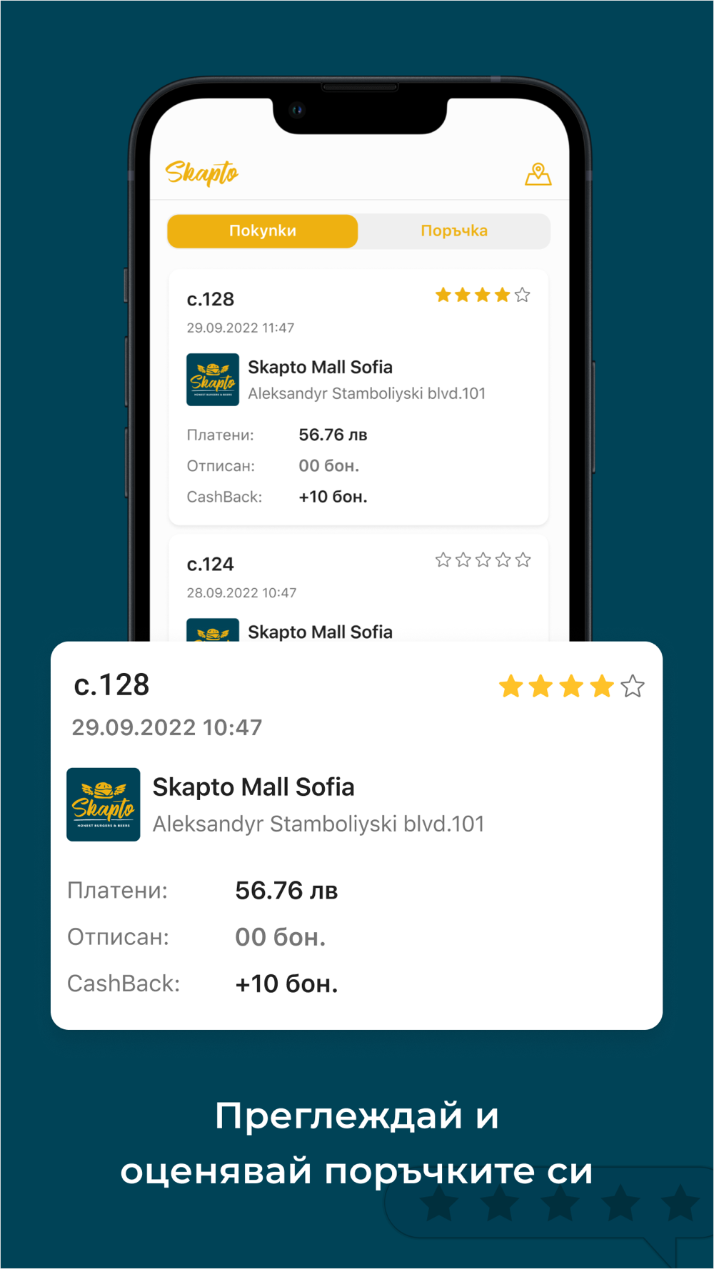 Skapto are the honest Bulgarian gourmet burgers, and now you can order them in your pajamas. Download our app and get lightning-fast delivery of your favorite burgers and beers right at your door. As easy as brushing your teeth while ordering a double Satoshi.