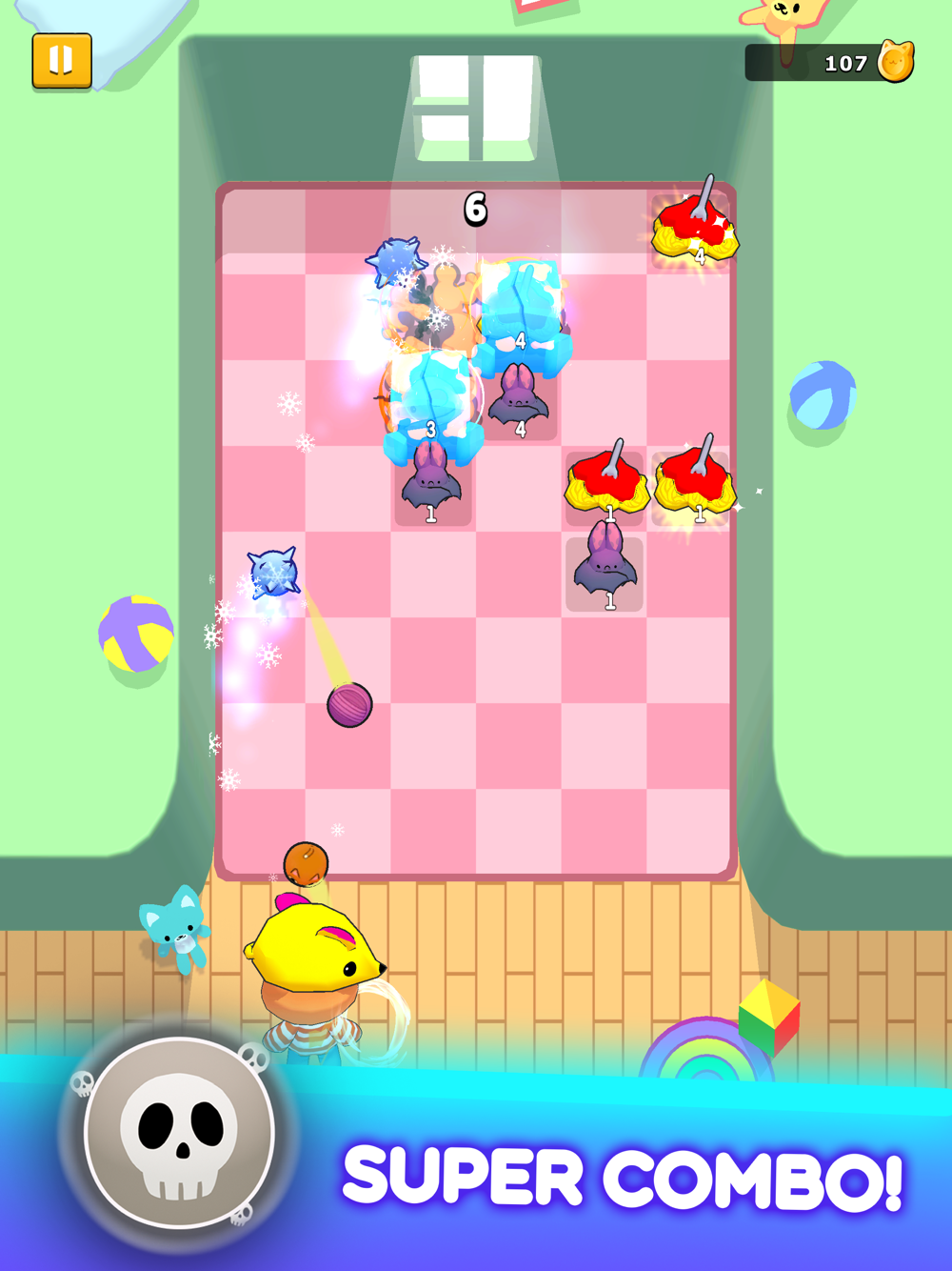 Simba Bounce is a fun and addictive game for all ages. Players take on the role of Simba, a brave cat who uses bouncing balls to throw at evil hats. There is a wide selection of balls with super powers to choose from, and each ball has its own unique properties. Collect coins to buy orbs to help you in battle.