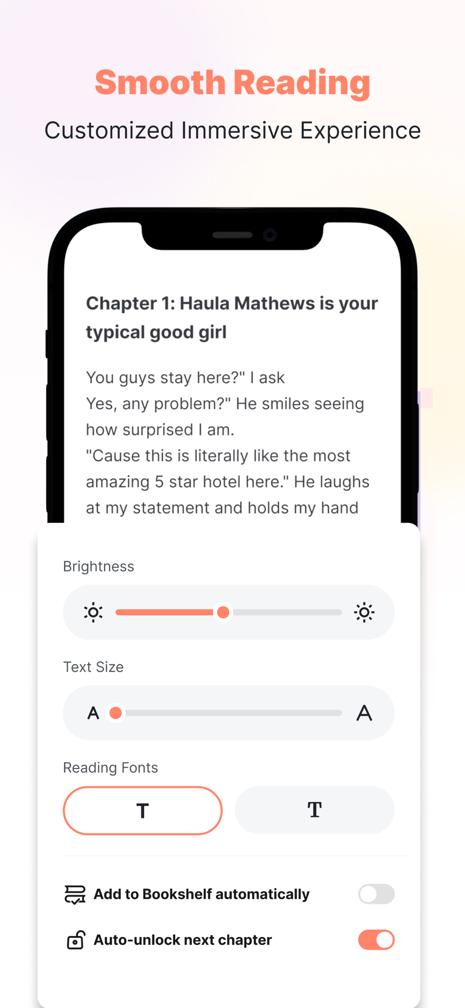 Readly features a personalized reading experience with powerful book recommendation mechanisms that suggest books tailored to your preferences. Our user-friendly application also features personalized reading settings, allowing readers to adjust the font, background, light and page turning mode according to their preferences. The reading history is automatically synced to your bookshelf, enabling you to resume reading from any device.